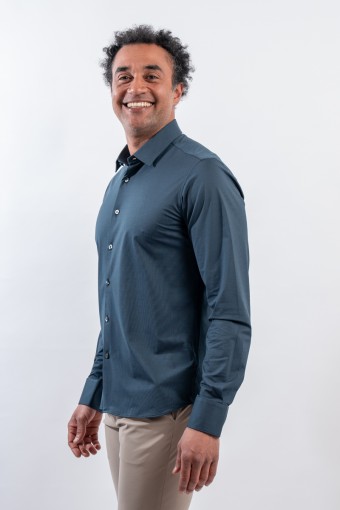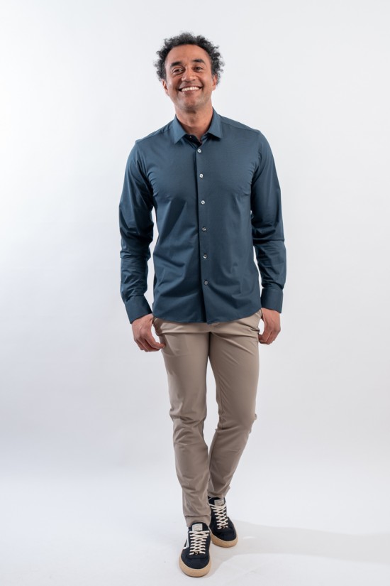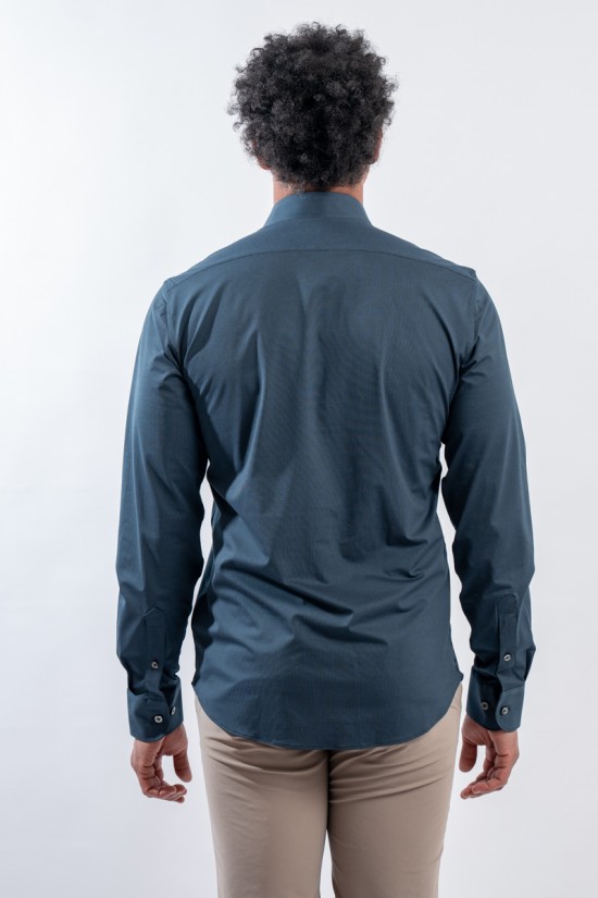 Camicia dal taglio classico caratterizzata dalla finissima lavorazione jaquard dell'esclusivo tessuto Oxford. Leggera, fresca ed estremamente confortevole è perfetta per chi non vuole rinunciare ad un tocco di classica eleganza anche nelle giornate più calde. Estremamente confortevole grazie all'elevata elasticità del tessuto. Rifinita da immancabili dettagli di stile come l'abbottunatura alla francese in madreperla ed il taglio arrotondato.