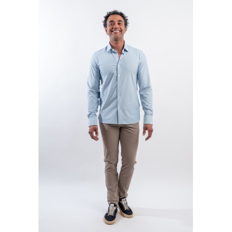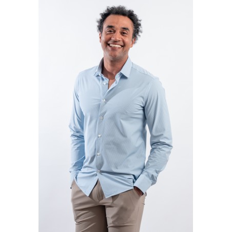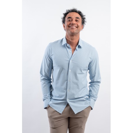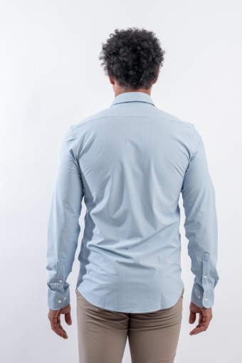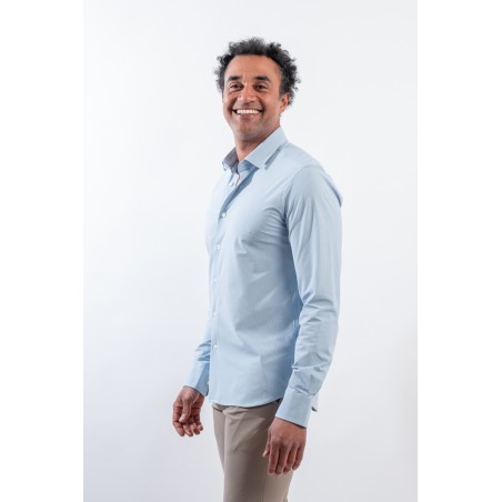 Camicia dal taglio classico caratterizzata dalla finissima lavorazione jaquard dell'esclusivo tessuto Oxford. Leggera, fresca ed estremamente confortevole è perfetta per chi non vuole rinunciare ad un tocco di classica eleganza anche nelle giornate più calde. Estremamente confortevole grazie all'elevata elasticità del tessuto. Rifinita da immancabili dettagli di stile come l'abbottunatura alla francese in madreperla ed il taglio arrotondato.
