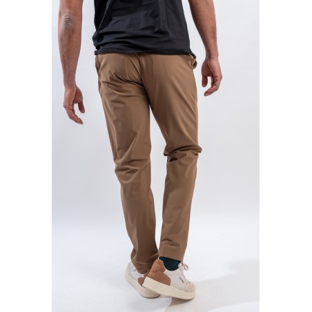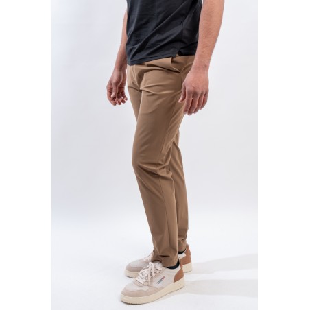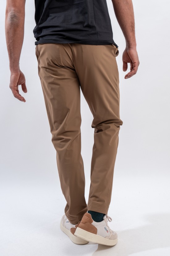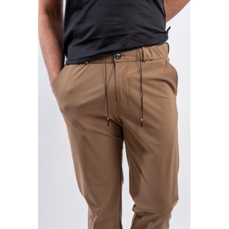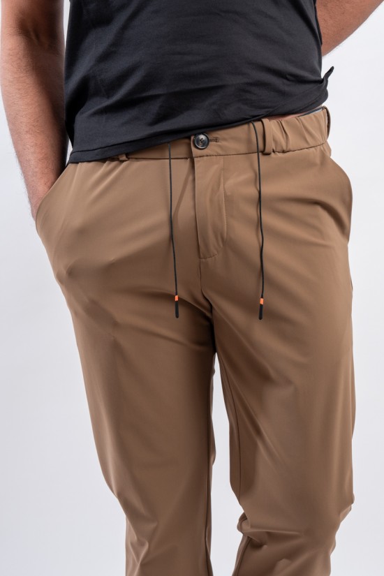 Pantalone modello chino a vita media, realizzato nell'esclusivo tessuto stretch SURFLEX® dall'aspetto super opaco, morbido e confortevole. Fresco e leggero, è irrinunciabili per chi vuole aggiungere un tocco di eleganza urban nelle calde serate estive. Vestibilità ottimale data dalla vita elasticizzata regolabile con coulisse e passanti per la cintura. Antipiega e no stiro, sono ulteriori qualità che rendono il modello versatile, ideale in tutte le occasioni.