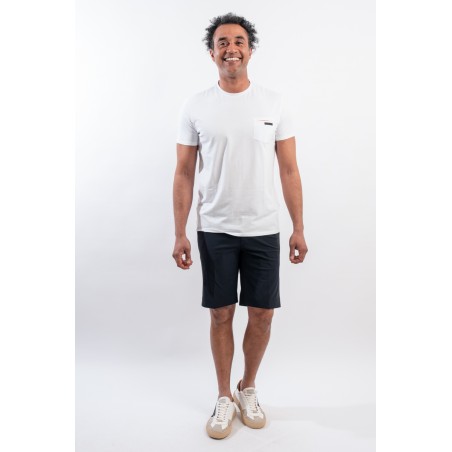 Bermuda dal taglio classico ed essenziale, ideale per ogni occasione informale, lunghezza media e look super opaco dato dal tessuto stretch Surflex®. Leggero, fresco, traspirante ed estremamente confortevole. Completi dei tradizionali dettagli come la vita con passanti per la cintura, bottone in cornio e pattina che dissimula la zip. Tasche laterali alla francese ed eleganti tasche posteriori a filetto. Rifiniti dalla cura sartoriale tipica di RRD e dall'inconfondibile logo applicato dietro.