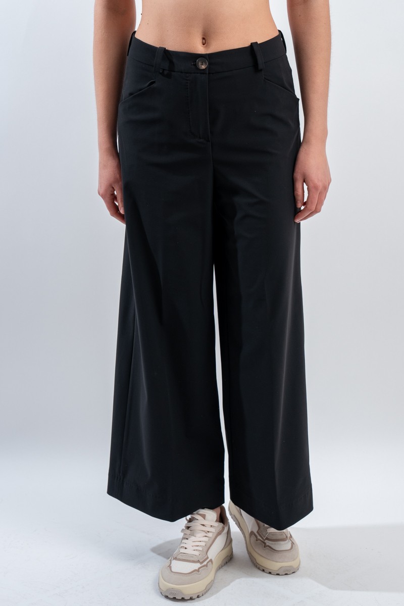 Pantaloni palazzo a vita alta modello cropped. Realizzati in tessuto stretch Surflex®, freschi traspiranti ed estremamente confortevoli. No iron e di rapida asciugatura sono la combinazione perfetta di funzionalità ed eleganza. Un capo immancabile nel guardaroba della bella stagione, facili da abbinare per un look raffinato e comodo che non passa mai di moda.