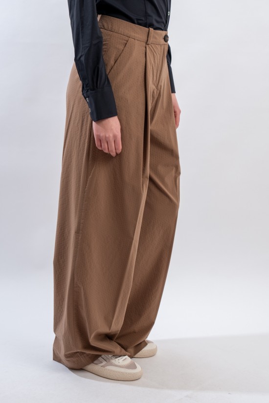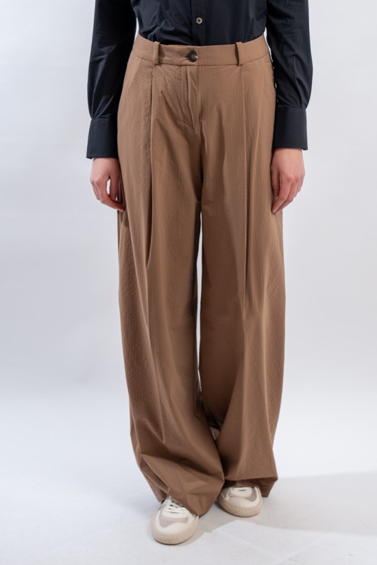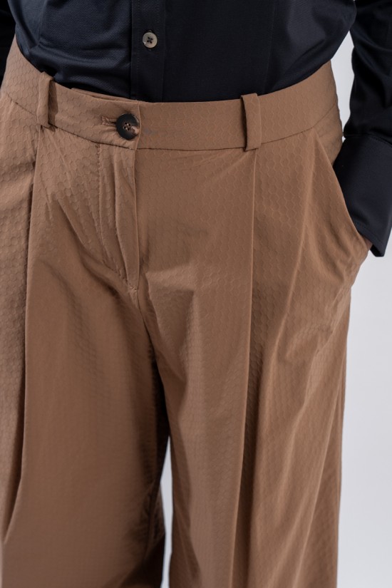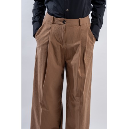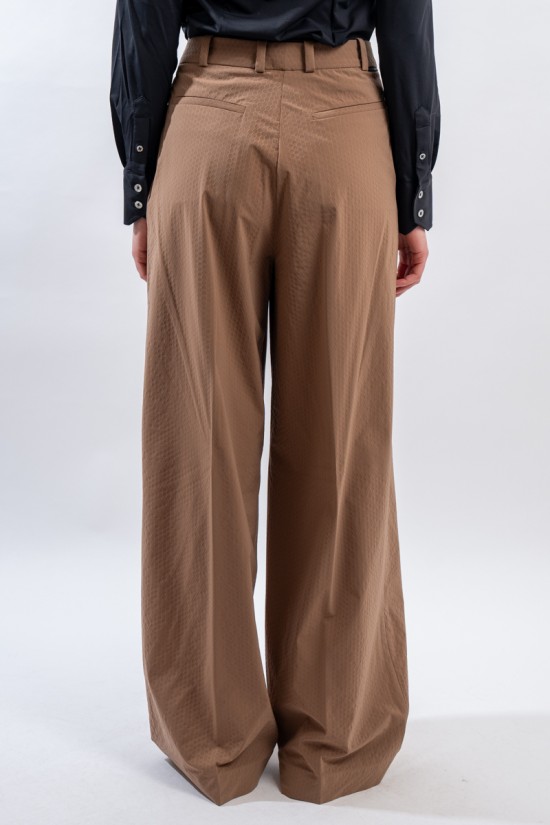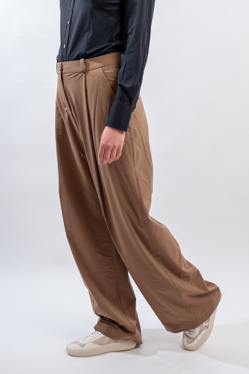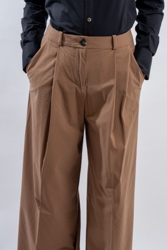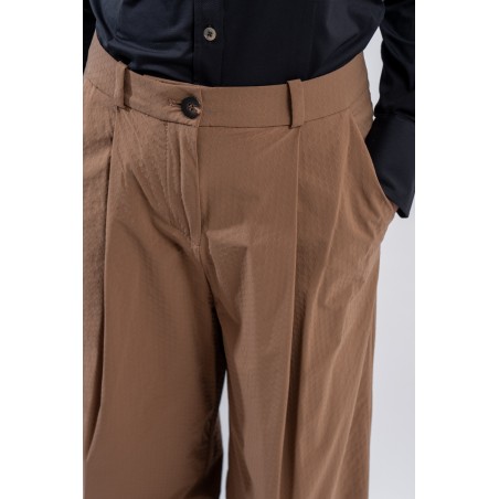 Parola d'ordine contemporaneità ed eleganza, il pantalone firmato RRD realizzato in jaquard elasticizzato, è il capo che non può mancare nell'armadio della nuova SS25. Caratterizzato dalla shiluette fluida e dalle pinces frontali che slanciano la figura donando al capo un tocco sofisticato e chic. La morbidezza del tessuto, la vita alta ed il micro motivo pied-de-poule stampato tono su tono, aggiungono originalità al design completano il look di un pantalone confortevole ma raffinato.