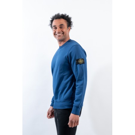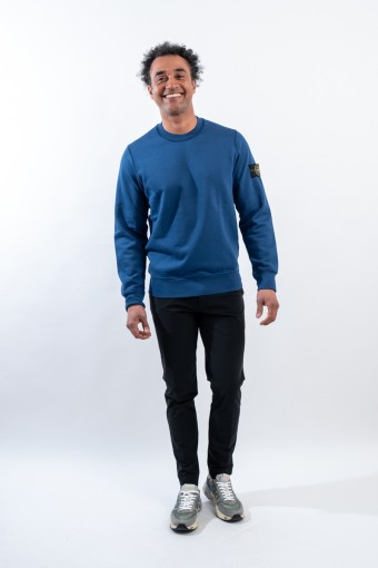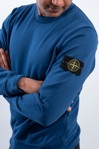 Felpa girocollo Stone Island realizzata in morbido pile di cotone biologico. Caratterizzata da dettagli a coste elasticizzate sui polsini, scollo e fondo e dettaglio a lunetta sotto lo scollo posteriore. Modello tinto in capo ed iconico badge Stone Island applicato sulla manica sinistra.