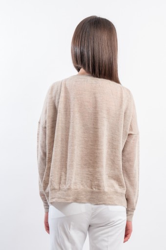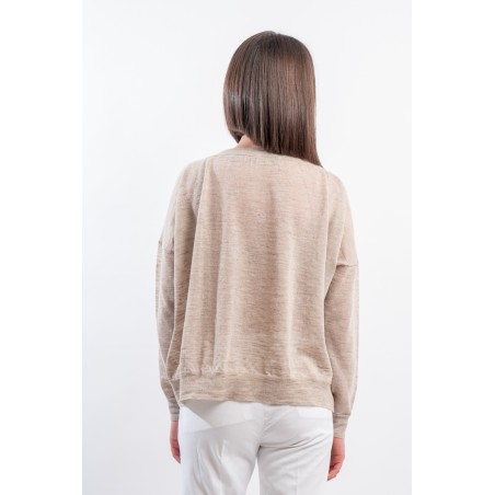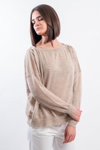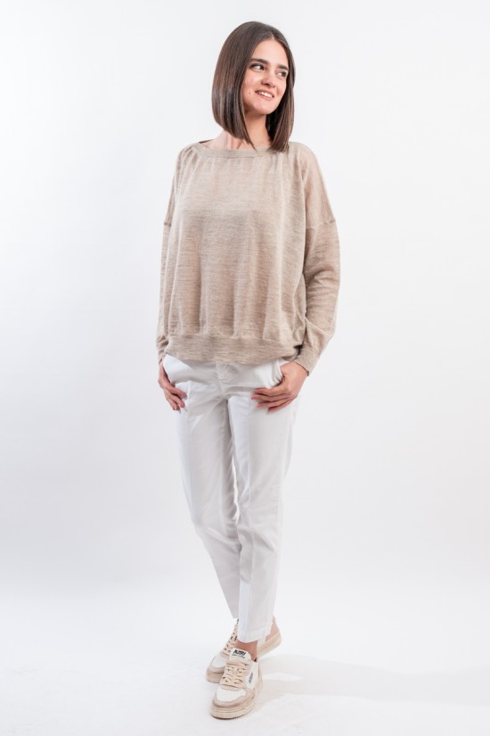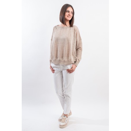 Maglia scollo a barca firmata Roberto Collina realizzata in lino fiammato leggerissimo. Manica lunga con spalla scesa e collo a costine. Taglio boxy. Made in Italy.