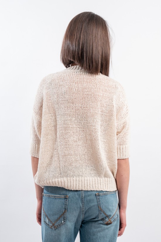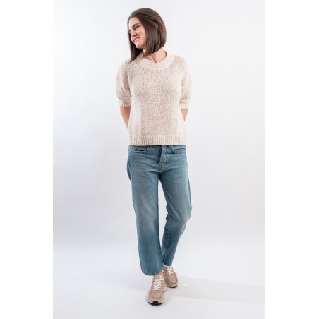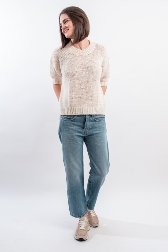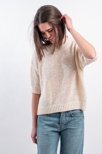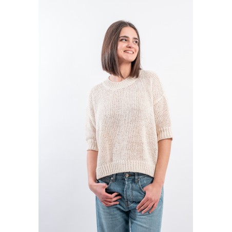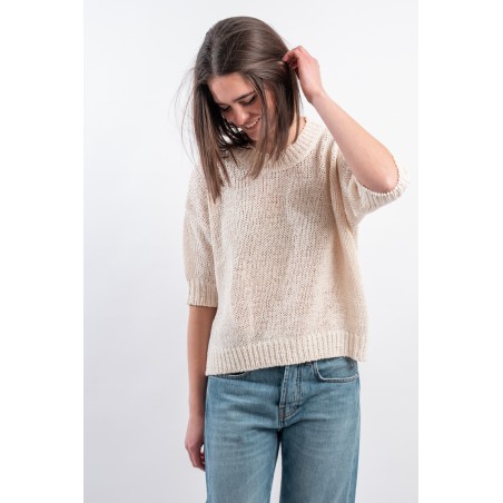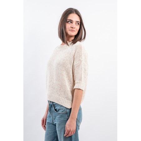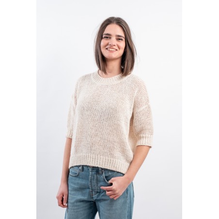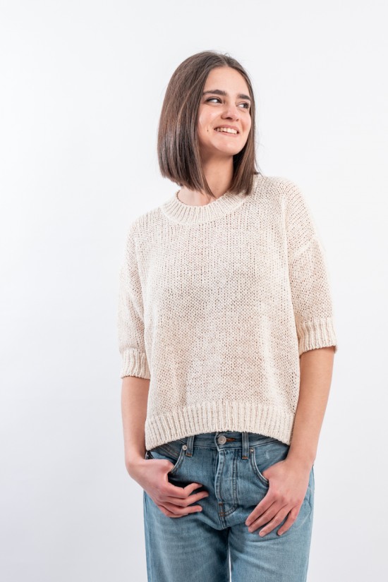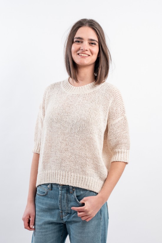 Maglia girocollo realizzata in cotone biologico firmata Roberto Collina, Made in Italy. Arricchita dalla lavorazione a coste su collo, polsini e fondo. Il taglio boxy e la manica scesa abbinati ad un'elegante lavorazione, la rendono comoda e versatile. Ideale per conferire un tocco di romanticismo al tuo outfit quotidiano.