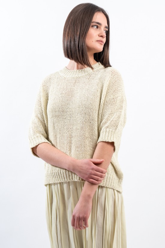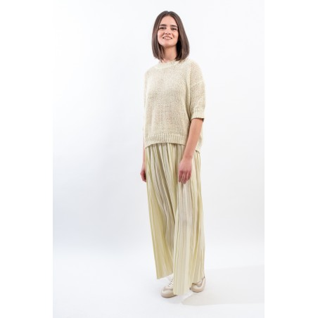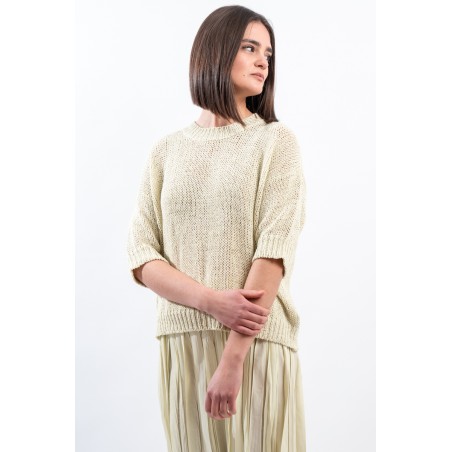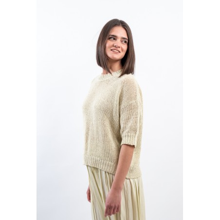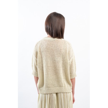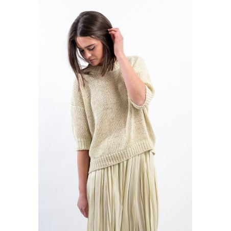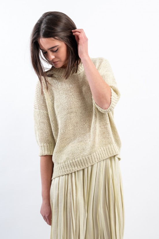 Maglia girocollo realizzata in cotone biologico firmata Roberto Collina, Made in Italy. Arricchita dalla lavorazione a coste su collo, polsini e fondo. Il taglio boxy e la manica scesa abbinati ad un'elegante lavorazione, la rendono comoda e versatile. Ideale per conferire un tocco di romanticismo al tuo outfit quotidiano.