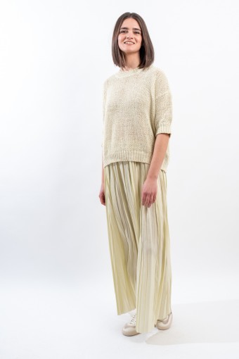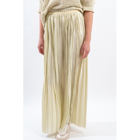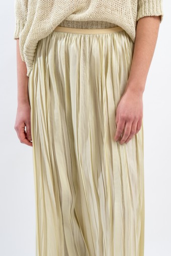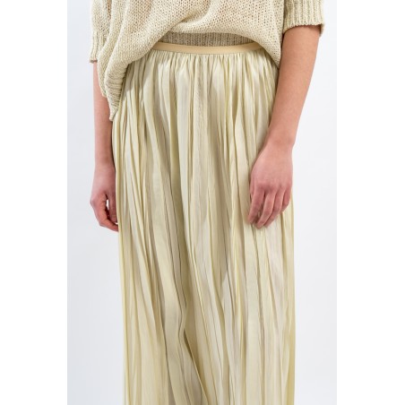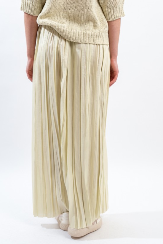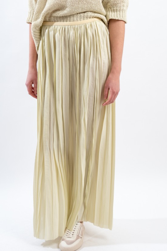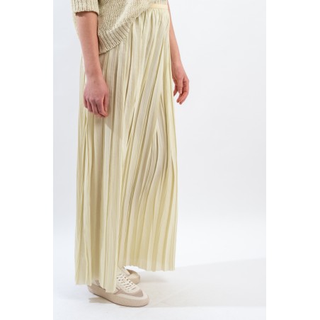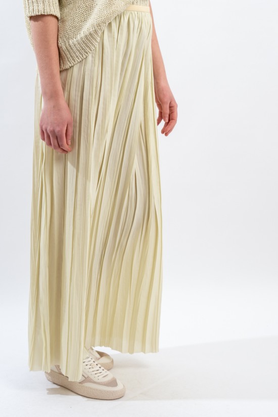 Elegante e versatile gonna lunga plissè. Caratterizzata dalle linee morbide e dall'orlo con taglio a laser per una finitura senza cuciture. La vita elasticizzata permette una perfetta vestibilità. Design essenziale caratterizzato dalla qualità Made in Italy firmata Roberto Collina.