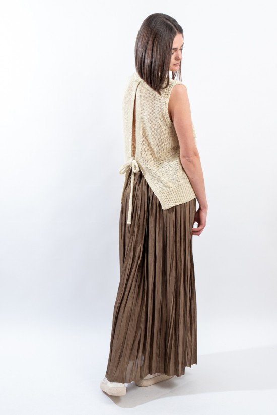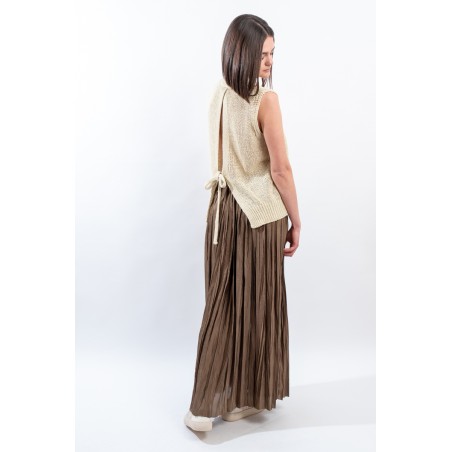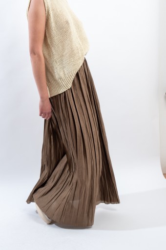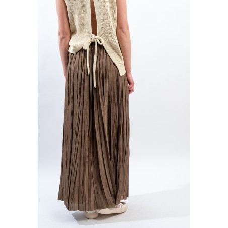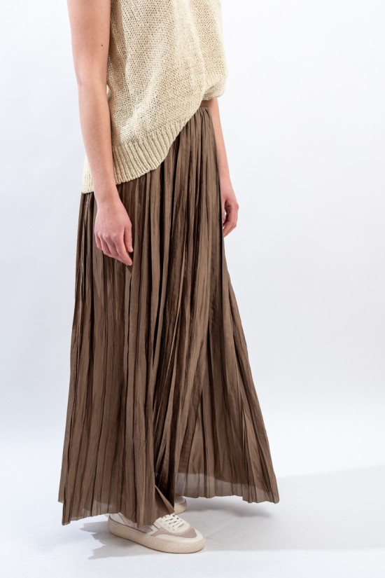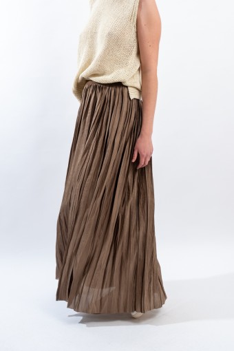 Elegante e versatile gonna lunga plissè. Caratterizzata dalle linee morbide e dall'orlo con taglio a laser per una finitura senza cuciture. La vita elasticizzata permette una perfetta vestibilità. Design essenziale caratterizzato dalla qualità Made in Italy firmata Roberto Collina.