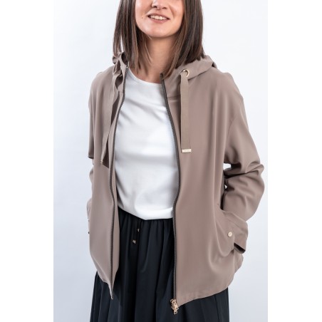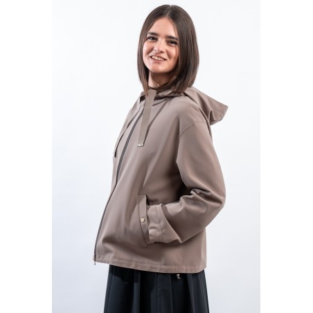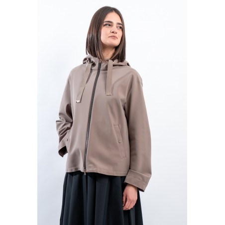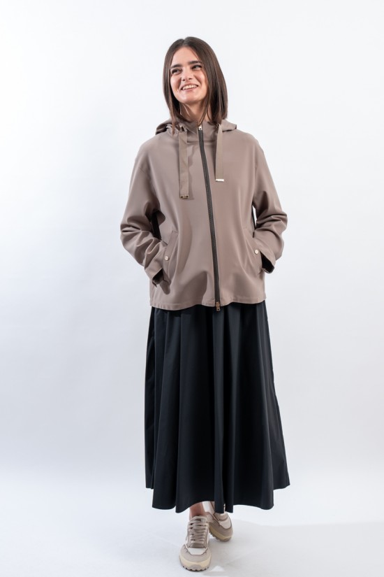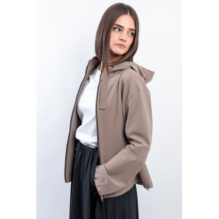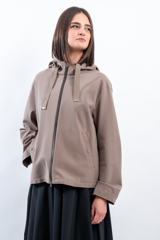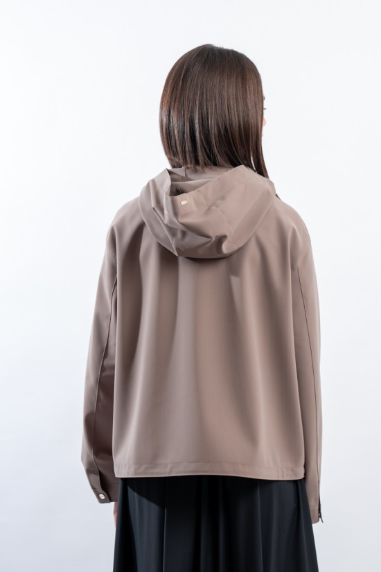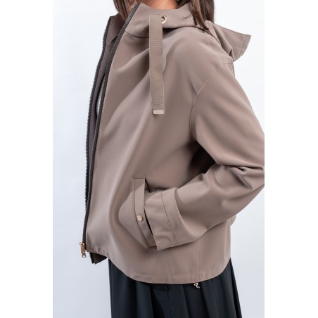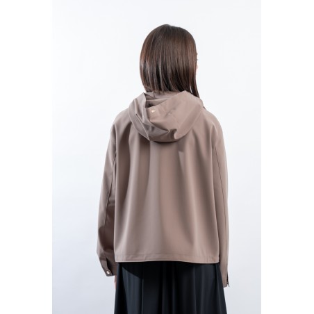 Giubbotto corto con cappuccio realizzato in tessuto tecnico stretch dal comfort estremo e morbido al tatto. Impermeabile, antivento e traspirante. Taglio comodo e regolabile sul fondo tramite coulisse- Essenziale nel gusto ed estremamente funzionale nel quotidiano!