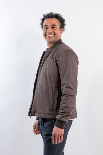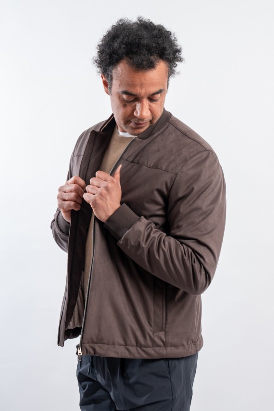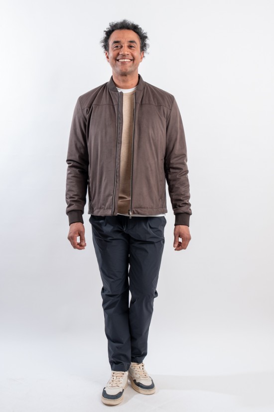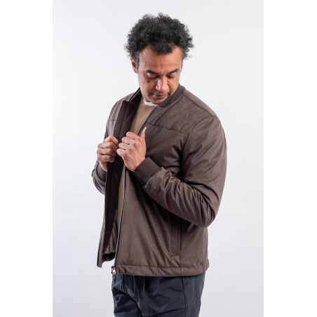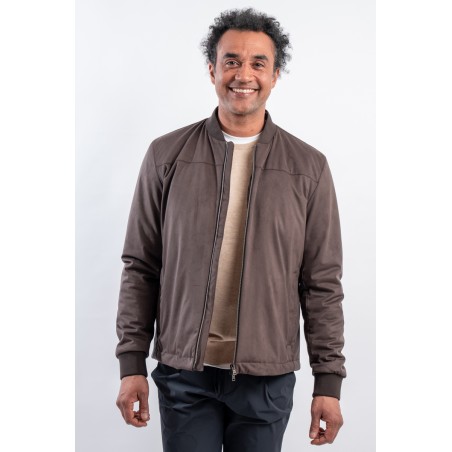 Giubbotto realizzato in morbida microfibra scamosciata. Estremamente leggero e confortevole grazie allo speciale filato 50 denari e all'imbottitura in ovatta che offre calore senza appesantire il capo. Il taglio bomber e le finiture in maglia offrono al capo un look contemporaneo e grintoso, perfetto in ogni momento della giornata.