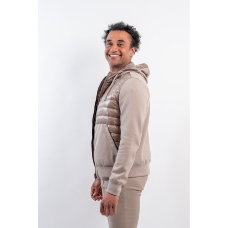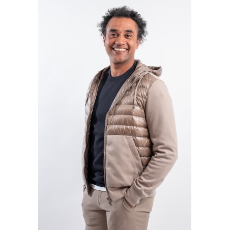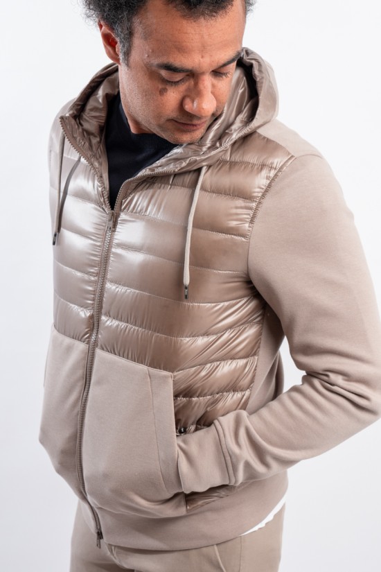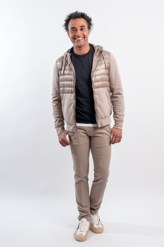 Originale e pratica questa giacca firmata Herno è realizzata in maglia interlock in misto cotone e nylon ultralight. Look moderno e senza tempo, dotata di cappuccio con coulisse e ampie tasche laterali. Imbottita in morbido e pregiato piumino 90/10 è super leggera e confortevole, ideale da indossare anche come outerwear.