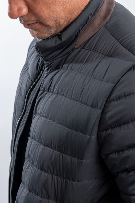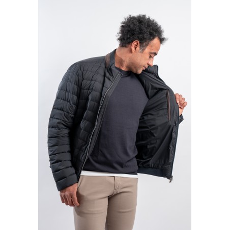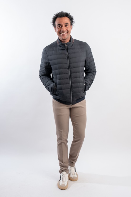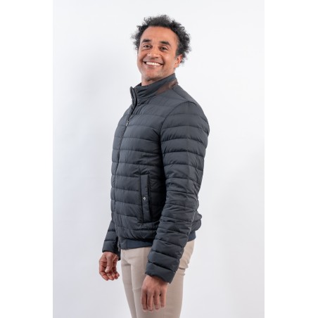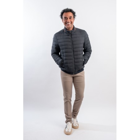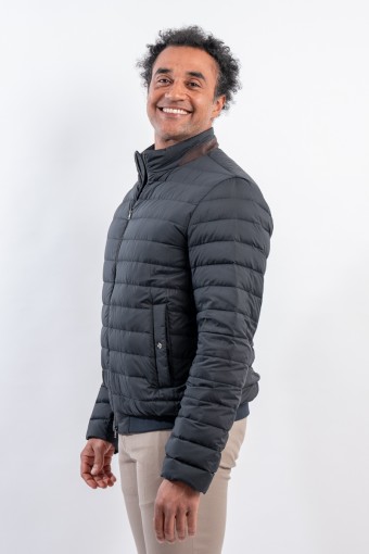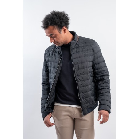 Piumino in microfibra di nylon riciclato abbinato ad un leggero tessuto scuba due strati. Realizzato con una delle più innovative tecniche di imbottitura è leggerissimo e soffice al tatto. Il design lineare è arricchito dalla classica trapuntatura boudine e dalla chiusura a zip doppio cursore. Il dettaglio effetto suede applicato al colletto aggiunge carattere ad un look essenziale rendendolo contemporaneo ed accativante. Impermeabile e confortevole è perfetto per affrontare al meglio la mezza stagione.