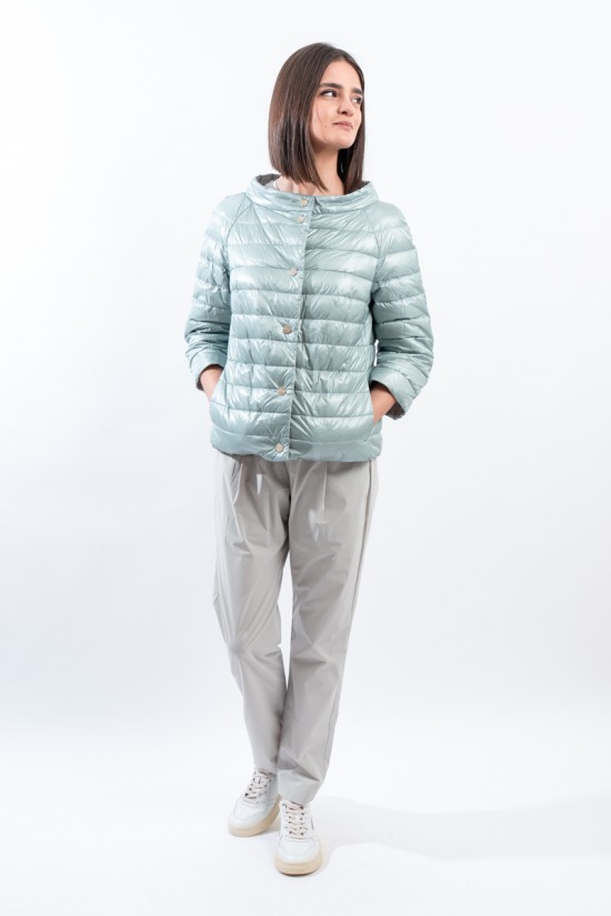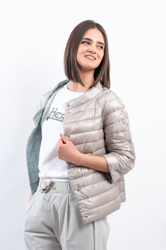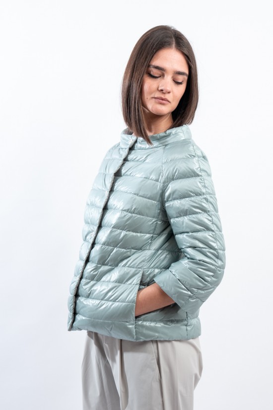 Cappa con manica 3/4 realizzata in nylon ultralight rifinita con lo scollo a cratere. La classica trapuntatura a boudin ed il taglio a trapezio conferiscono al capo un'eleganza audace, senza tempo. Reversibile, si adatta perfettamente ad ogni tuo outfit. Herno è da sempre simbolo di arte nella confezione e questo modello ne rappresenta appieno l'identità.