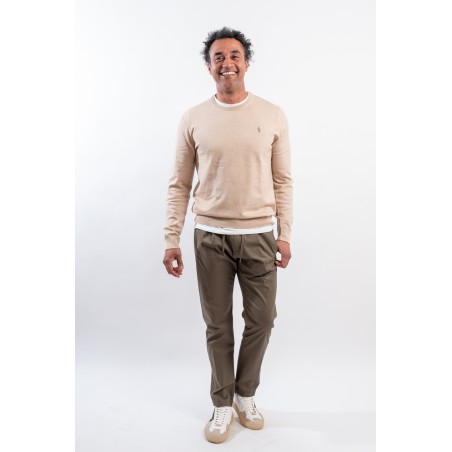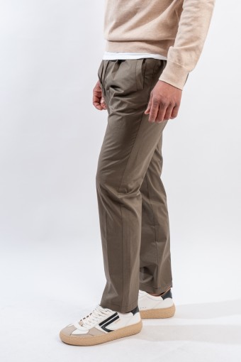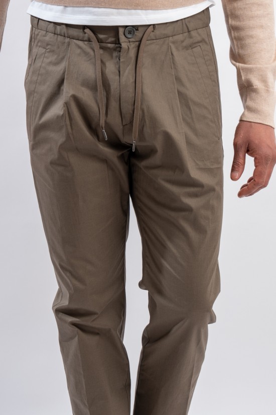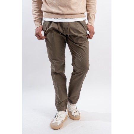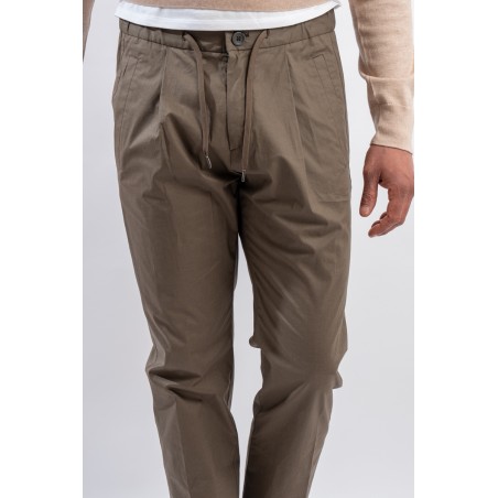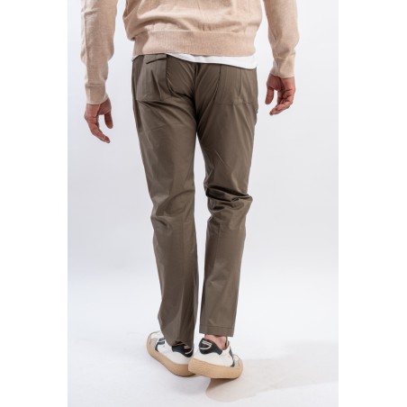 Pantalone realizzato in cotone elasticizzato e dotato di molteplici tasche. Due dietro a soffietto e due laterali. Look casual dall'animo deciso dato dal particolare effetto increspato. Confortevole e leggero è dotato di coulisse in vita per adattarsi perfettamente ad ogni esigenza.