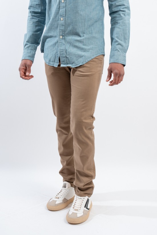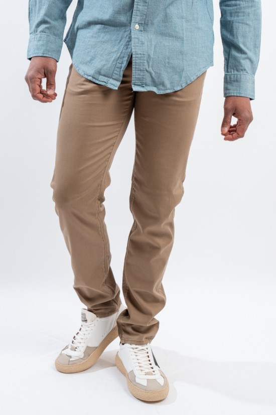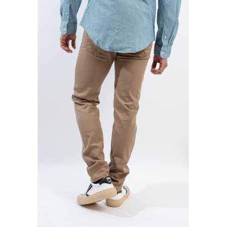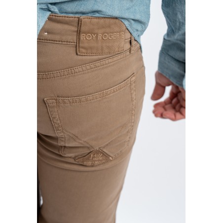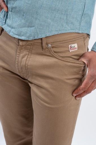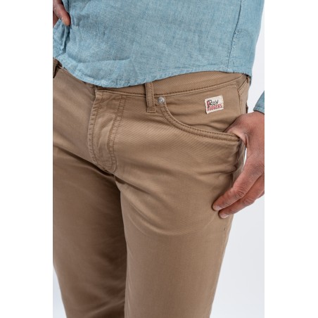 Morbido pantalone firmato Roy Roger's realizzato in gabardina leggera. Presenta vita media con passanti. Caratterizzato da dettagli raffinati come la salpa applicata sul retro e le tasche frontali e posteriori, arricchito dal label Roy Roger's. La chiusura è composta da bottone logato e zip, per un look pratico e stiloso. Taglio slim fit che valorizza la silhouette, ideale per un look casual e alla moda. Perfetto per chi cerca comfort senza rinunciare a stile e dettagli distintivi.