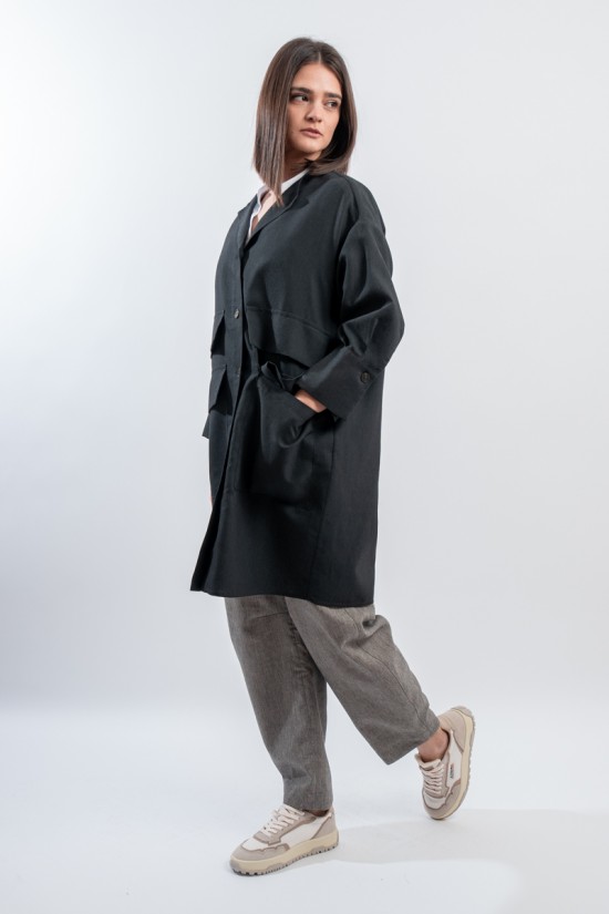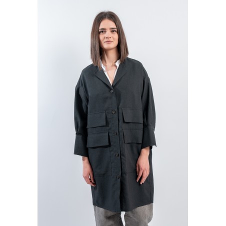 Abito caban corto firmato Alessia Santi, realizzato in un pregiato tessuto misto lino e cotone. Caratterizzato dal colletto a revers, dalle maniche a tre quarti e dalle tasche con patta sul davanti. La sua silhouette minimal ed essenziale si combina armoniosamente con la vivacità dell’abito con micro fantasia stampata, creando un equilibrio tra eleganza e praticità. Ideale per giornate calde, dona freschezza e stile senza rinunciare alla classe. Perfetto da indossare anche sopra un top ed un pantalone.