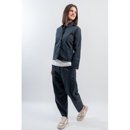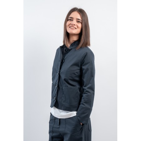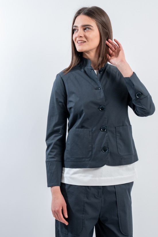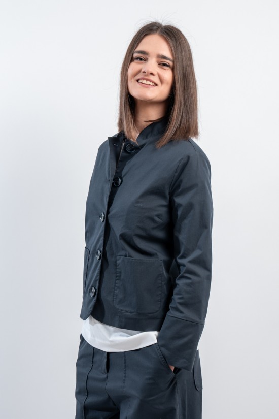 Elegante giacca firmata Alessia Santi, realizzata in cotone stretch che garantisce libertà di movimento e una vestibilità impeccabile. Il suo stile easy chic si distingue per il collo alla coreana, le tasche laterali e i bottoni frontali. Abbinata ai pantaloni coordinati e ad un top, crea un total look sofisticato e femminile.