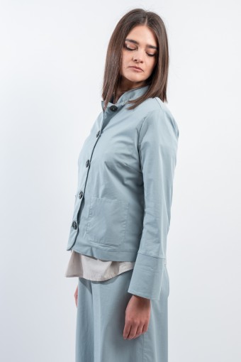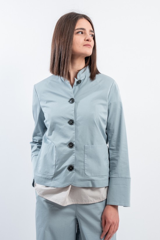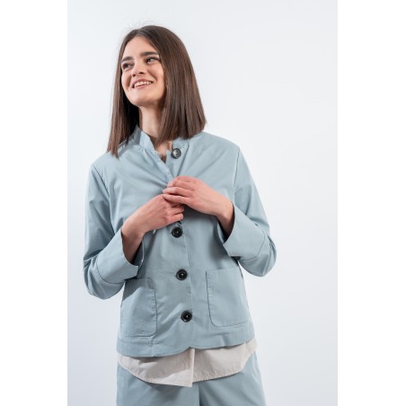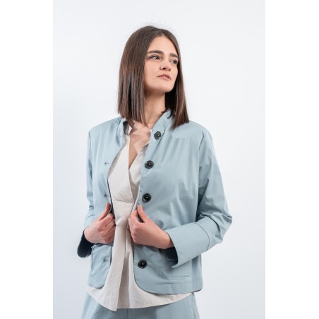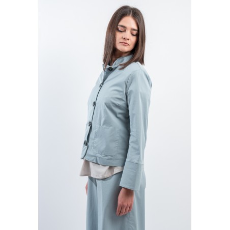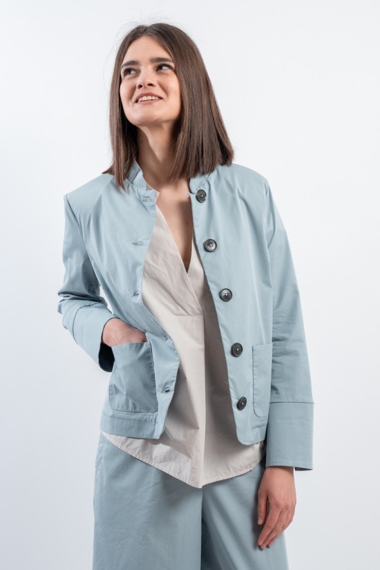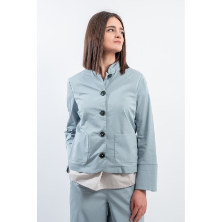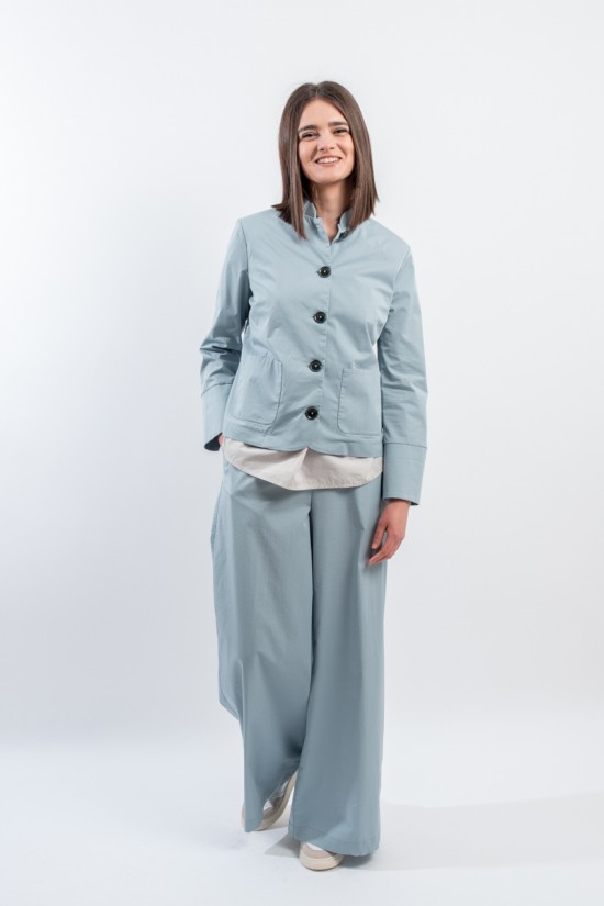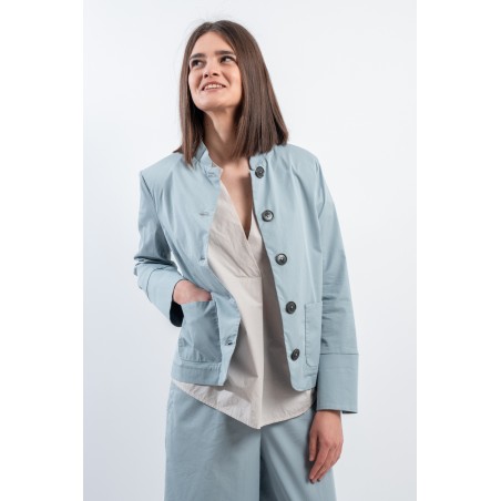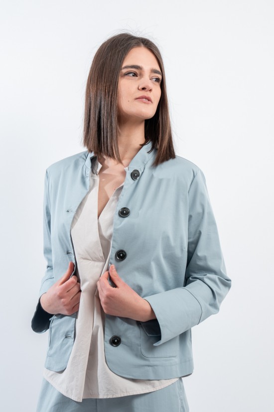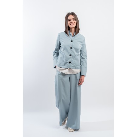Elegante giacca firmata Alessia Santi, realizzata in cotone stretch che garantisce libertà di movimento e una vestibilità impeccabile. Il suo stile easy chic si distingue per il collo alla coreana, le tasche laterali e i bottoni frontali. Abbinata ai pantaloni coordinati e ad un top, crea un total look sofisticato e femminile.