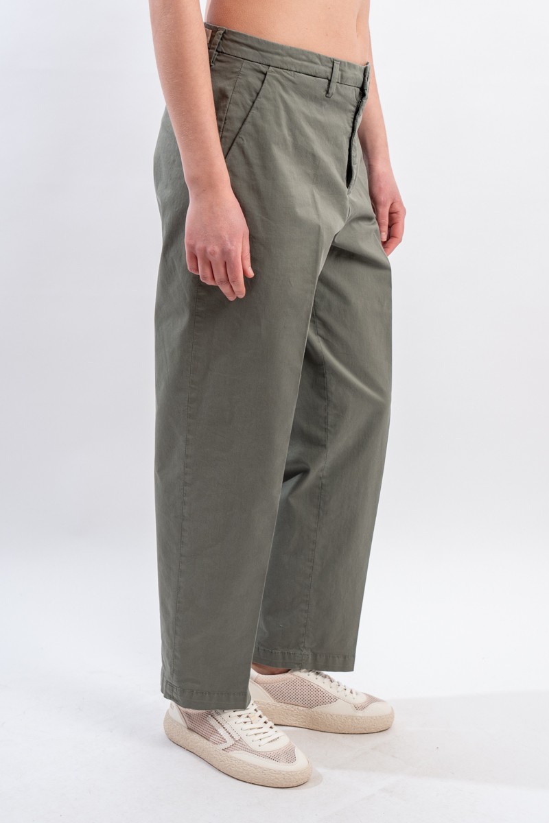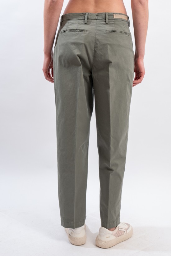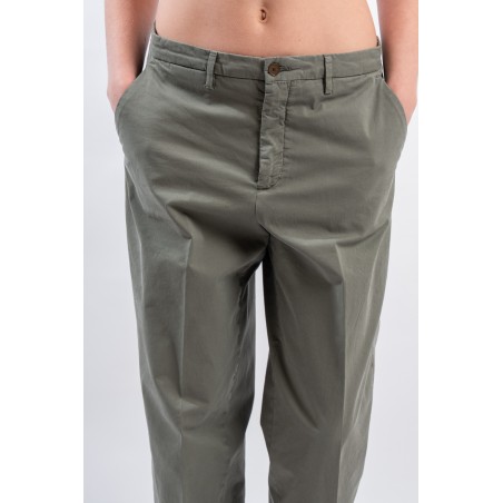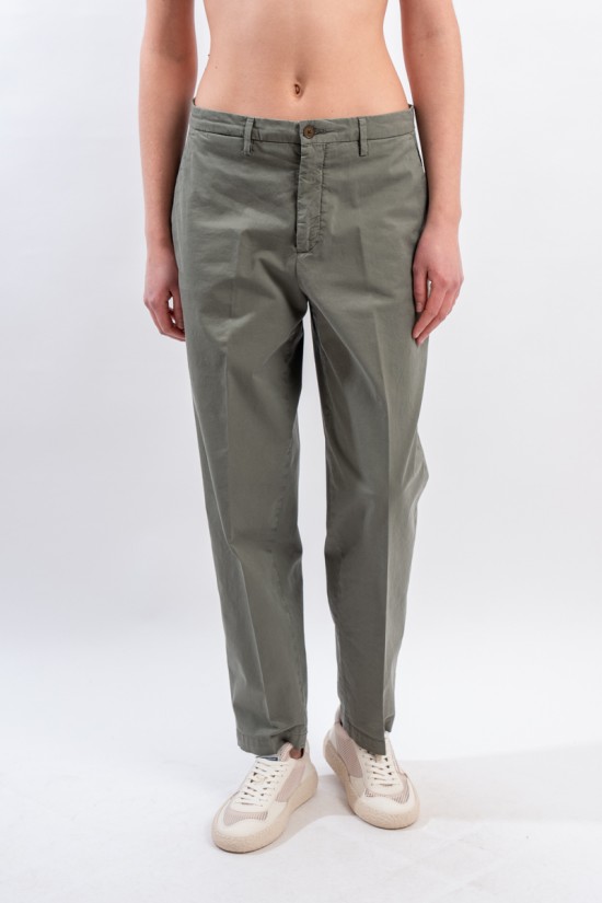 Pantalone chino con vestibilità relaxed e fondo dritto. Realizzati in morbida gabardina stretch. Tasche oblique sul davanti e tasche a filo dietro. Made in Italy.