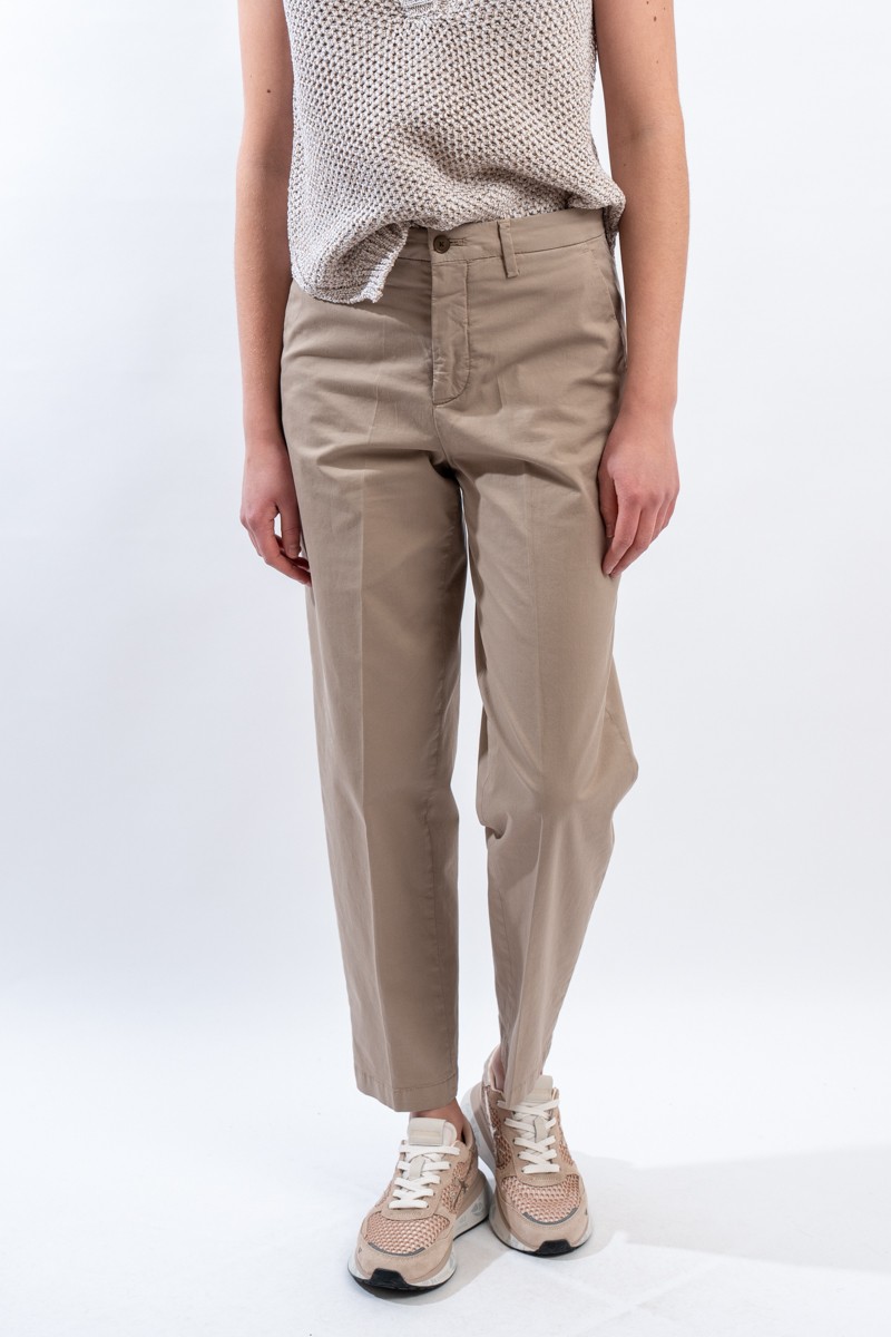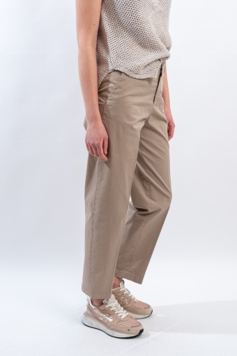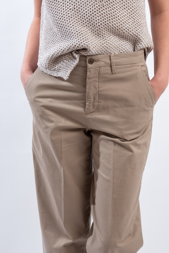 Pantalone chino con vestibilità relaxed e fondo dritto. Realizzati in morbida gabardina stretch. Tasche oblique sul davanti e tasche a filo dietro. Made in Italy.
