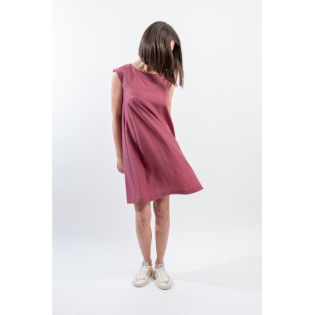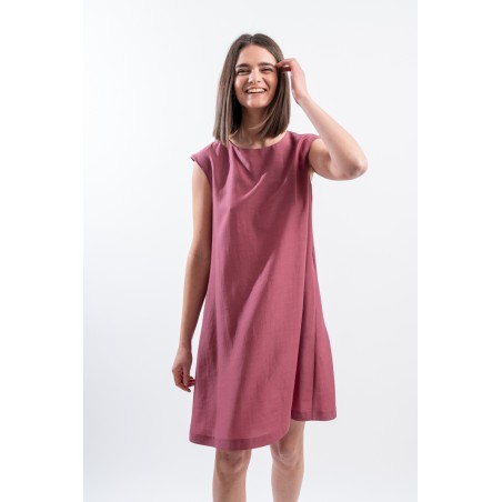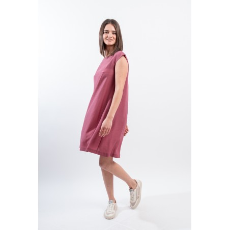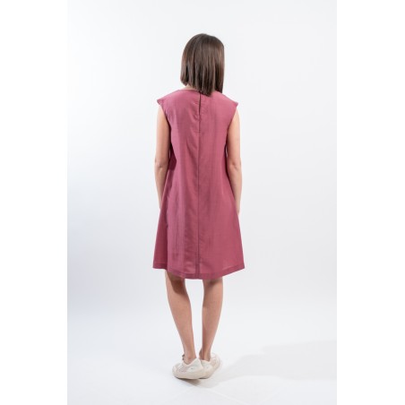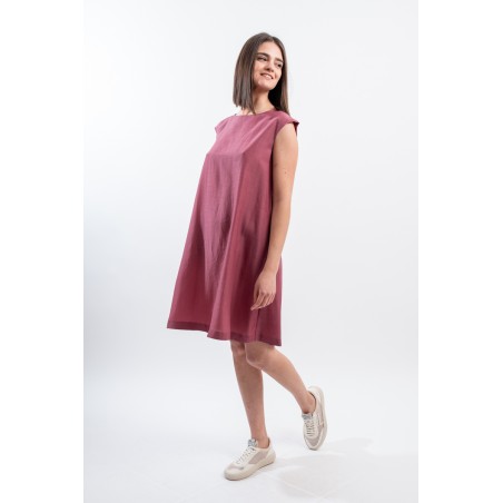 Abito ad A girocollo con manica ad aletta. Modello corto,fresco e leggero da indossare con disinvoltura in ogni occasione.