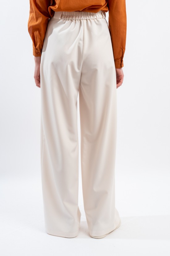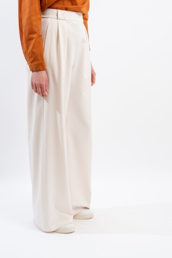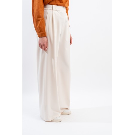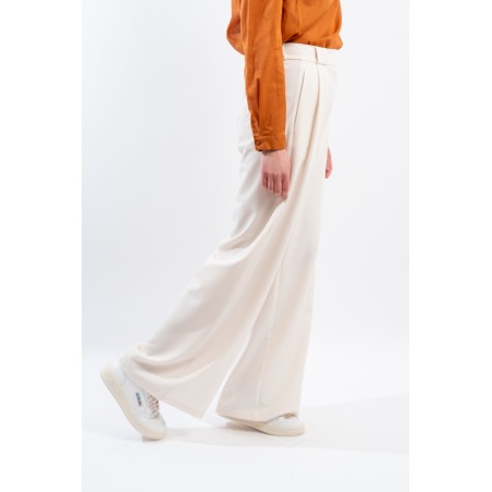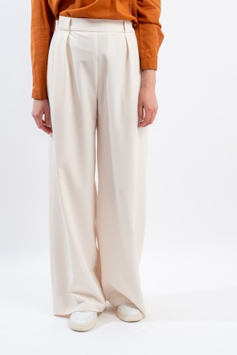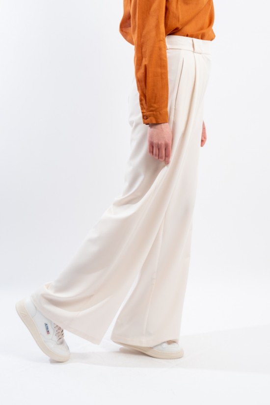 Pantaloni ampi a palazzo con pinces sul davanti. Realizzati in un tessuto stretch misto viscosa, fluido e morbido al tatto. Eleganti e di grande effetto, perfetti da coordinare con il blazer per un outfit ancora più ricercato!