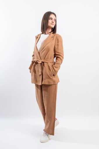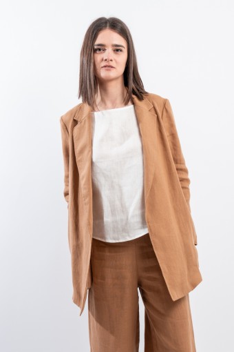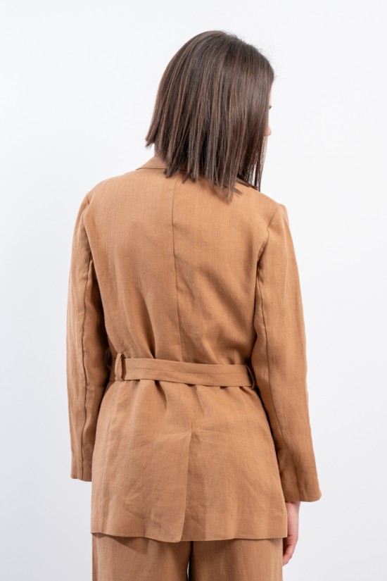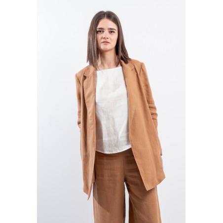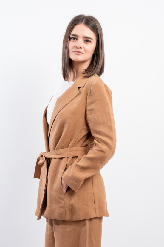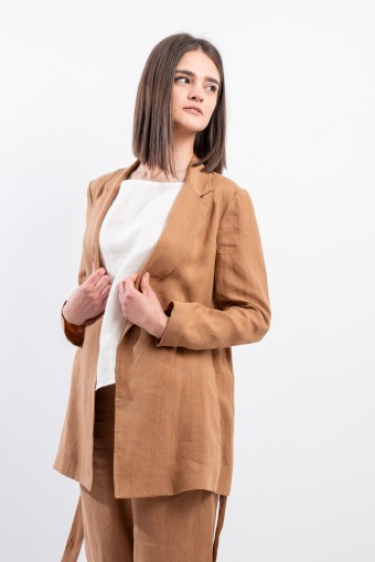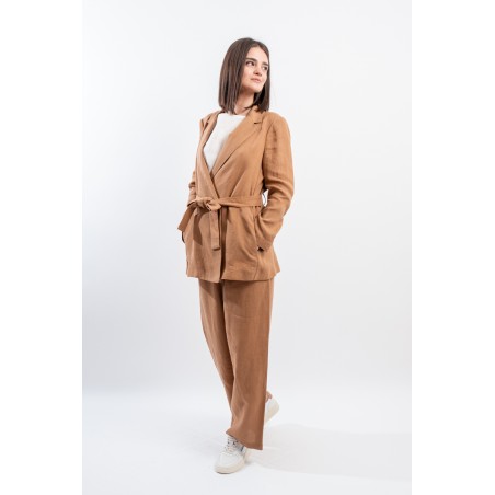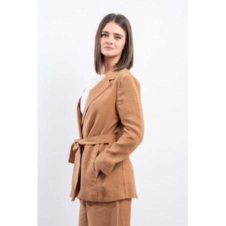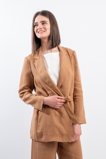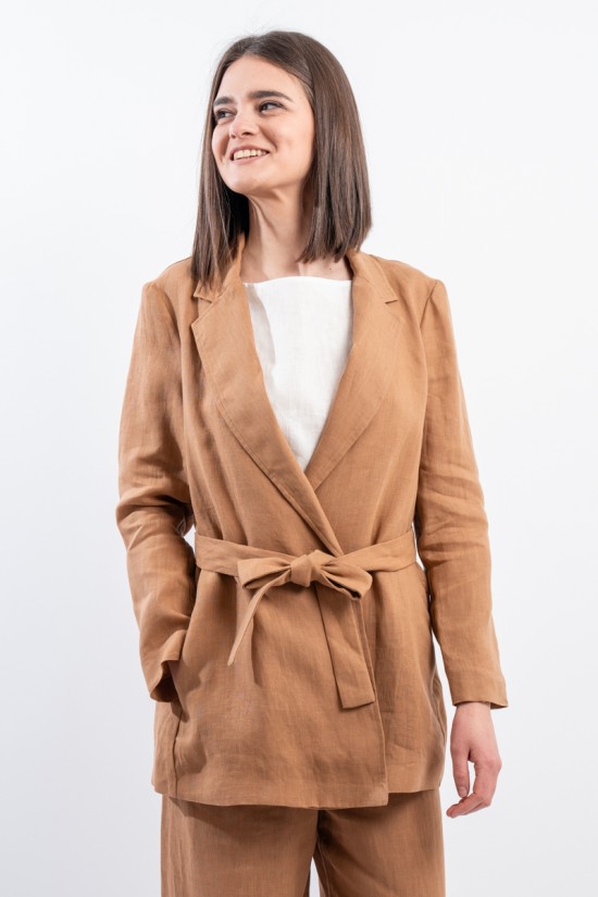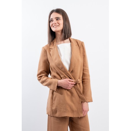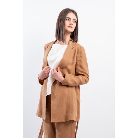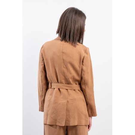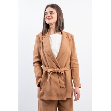 La giacca vestaglia firmata Niu' in puro lino unisce eleganza e comfort. Dotata di collo revers, fusciacca regolabile per valorizzare la silhouette e tasche laterali a filo. Ideale abbinata a pantaloni palazzo o a un gonnellone, perfetta per ogni occasione estiva o primaverile.