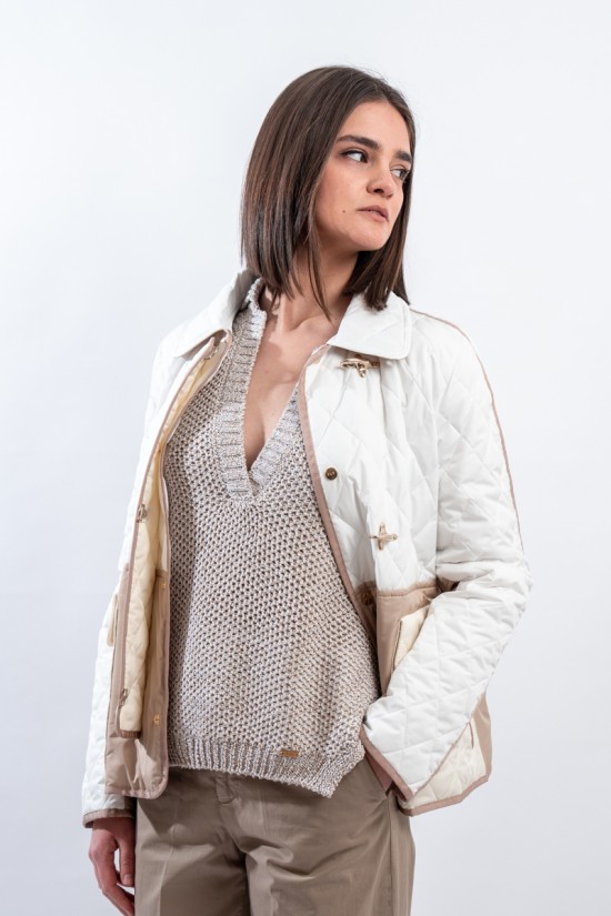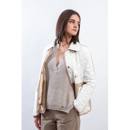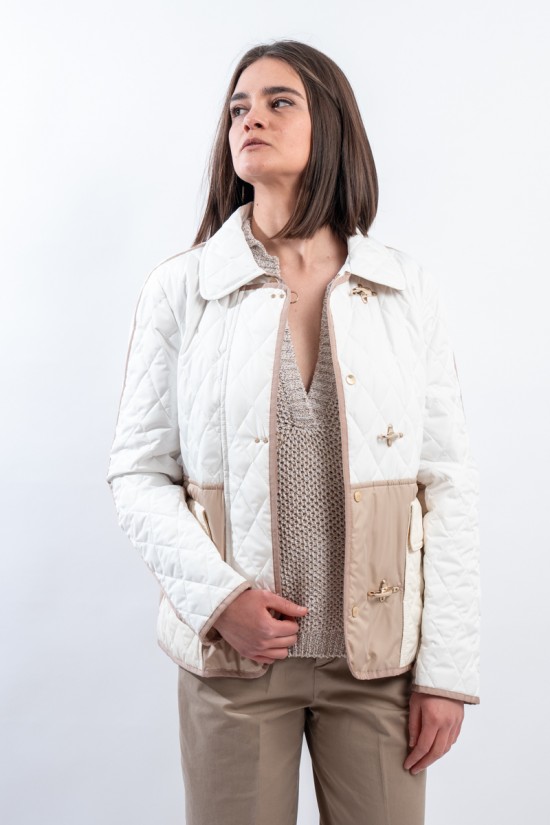 Giacca iconica Fay 3 ganci in tessuto tecnico trapuntato e multicolor. Imbottitura in morbida ovatta perfetta per le stagioni intermedie. Caratterizzato dalle raffinate bordature in nylon e dalle tasche a toppa. La chiusura centrale è impreziosita e perfezionati dagli iconici 3 ganci e dai bottoni automatici nascosti. Made in Italy.