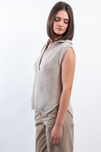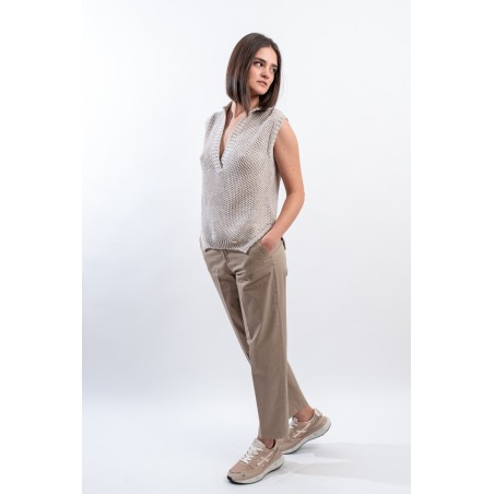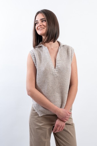 Gilet scollo a V realizzato in misto cotone e lurex con lavorazione a nido d'ape. Vestibilità regular. Made in Italy.