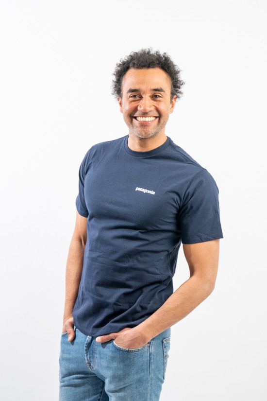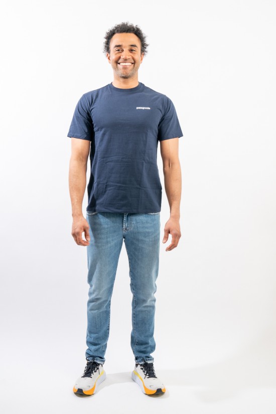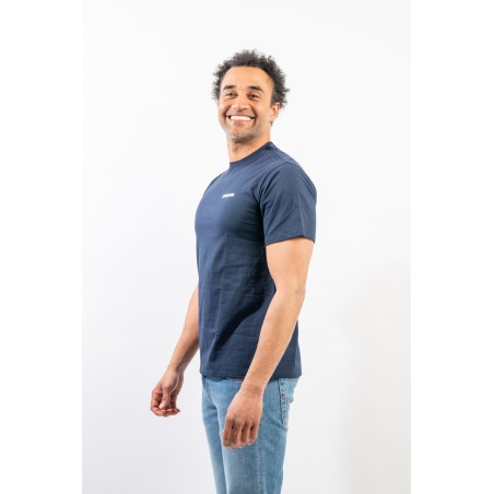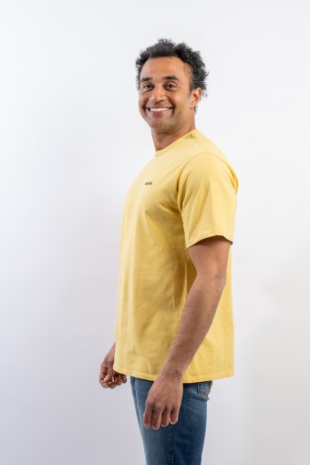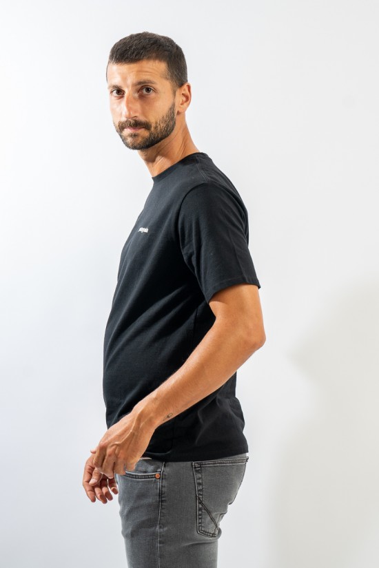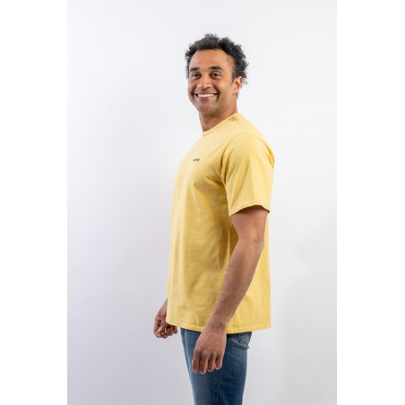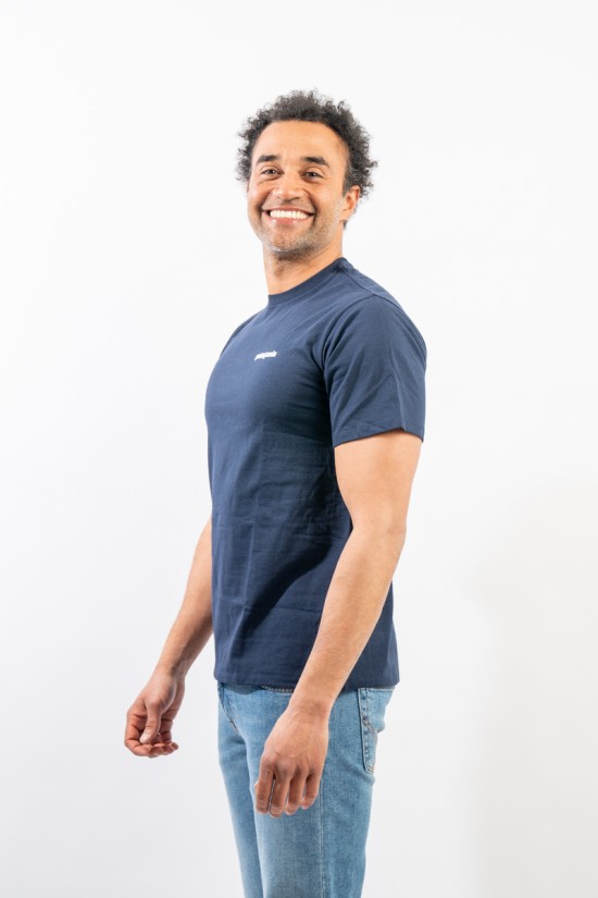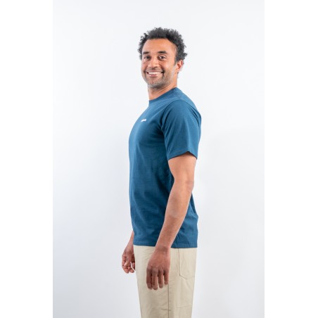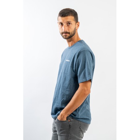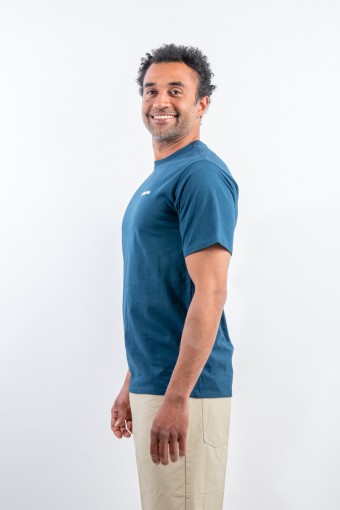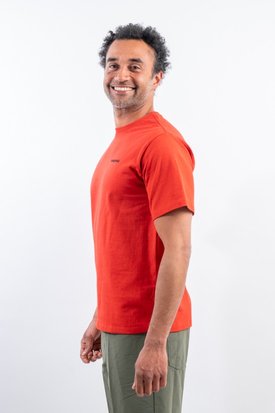 T-shirt a manica corta realizzata con materiali 100% riciclati, ottenuti impiegando 4,8 bottiglie di plastica e 136 grammi di scarti tessili di cotone. Questo metofo permette inoltre di risparmiare il 96% di acqua e di creare il 45% di CO₂ in meno rispetto alla produzione di un capo analogo in cotone tradizionale. Con cuciture Fair Trade Certified.