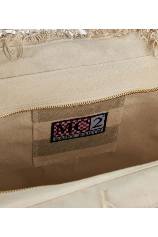 Borsa versatile e capiente tinta unita. Arricchita dalle frange lungo i contorni, è realizzata in robusto cotone canvas, con pratici e resistenti manici, chiusura con cerniera e due taschine di servizio. Ideale per ogni giornata estiva!