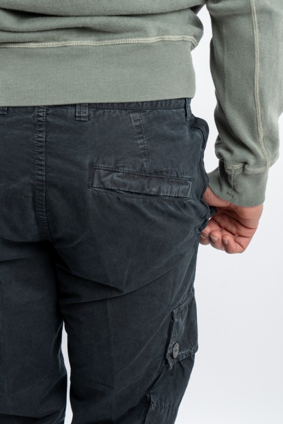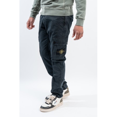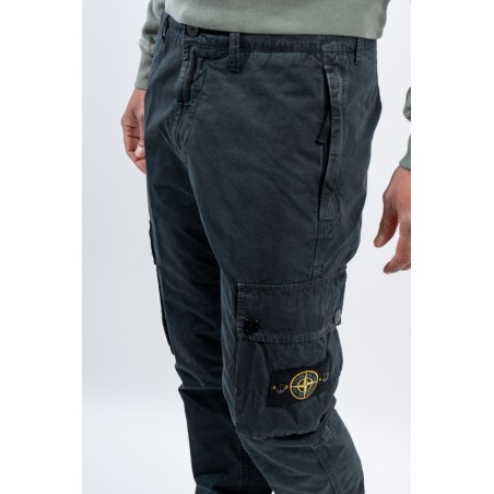 Pantalone cargo Stone Isalnd in tela di cotone biologico garzato, con vestibilità slim e un look leggermente vissuto grazie al trattamento ‘OLD’. Dotato di numerose tasche funzionali: tasche in piedi con zip nascosta, tasca posteriore a fessura con bottone automatico nascosto e tasche applicate a soffietto sulle gambe con patella e bottone. Impreziosito dall'iconico badge Stone Island sulla tasca sinistra che aggiunge un tocco distintivo. Ideale per uno stile pratico e contemporaneo, con dettagli curati e un design robusto.