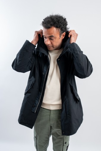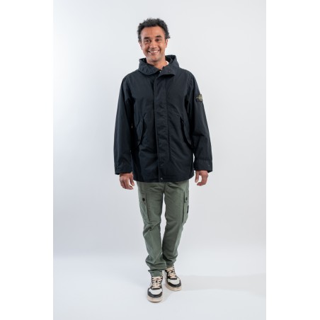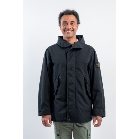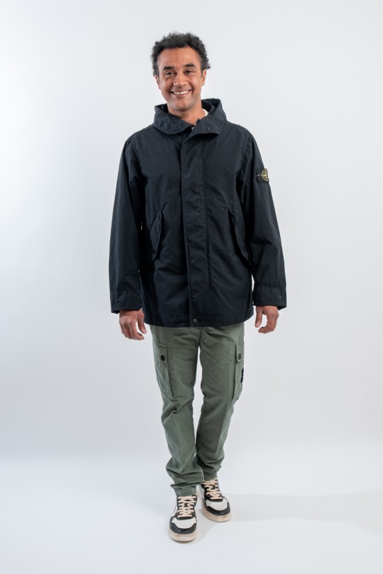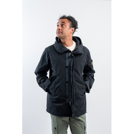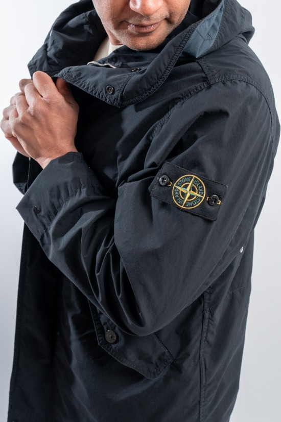 Parka firmato Stone Isalnd realizzato in leggero tessuto di poliestere riciclato al 60%, con un aspetto super opaco e una texture simile al cotone. Il processo di tintura in capo a 130°C sotto pressione, arricchito con un agente antigoccia, conferisce al capo una finitura resistente all'acqua. Caratterizzato dal cappuccio protettivo con patella e cuciture overstitch e dalle tasche alla francese con patta e bottone automatico. Chiusura principale con zip doppio cursore sotto il cannoncino con bottoni nascosti, mentre una coulisse interna sul retro permette una regolazione personalizzata. Impreziosito sulla manica sinistra dall'iconico badge Stone Island.