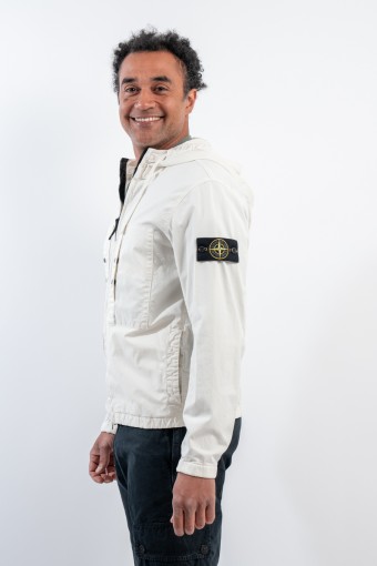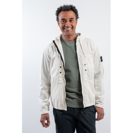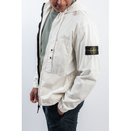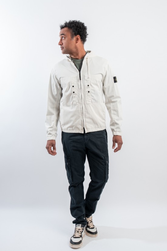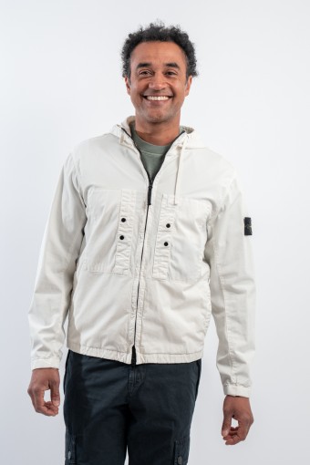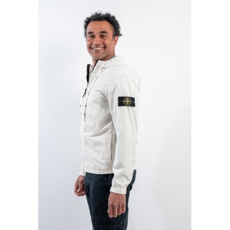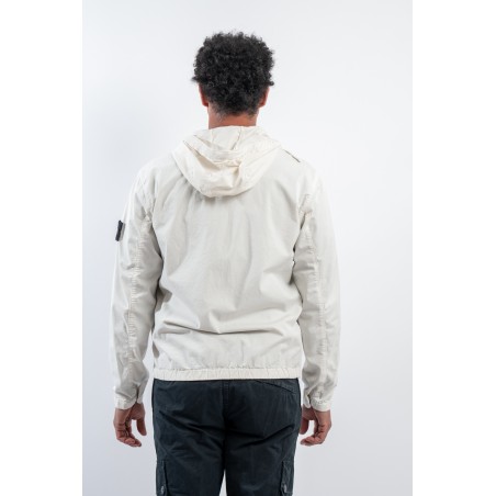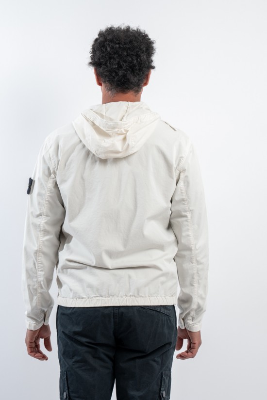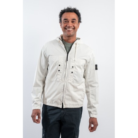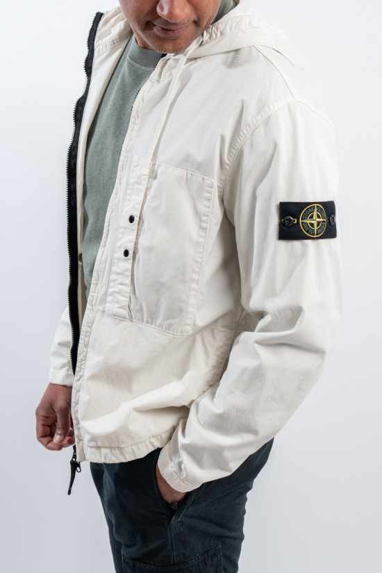 Giacca Stone Island con cappuccio in twill di cotone Supima® stretch, realizzata in filato mercerizzato e elasticizzato che garantisce resistenza e comfort. Presenta coulisse sagomata, due tasche applicate con bottone automatico, polsi con bottoni, tasche in piedi e chiusura con zip doppio cursore nascosta. Impreziosita dall'iconico badge Stone Island sulla manica sinistra.