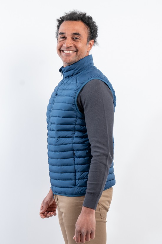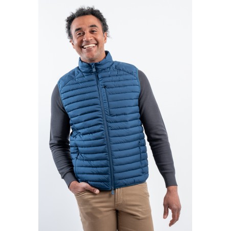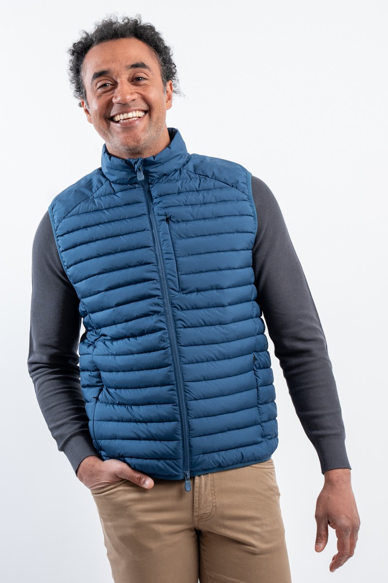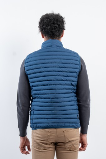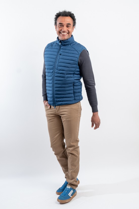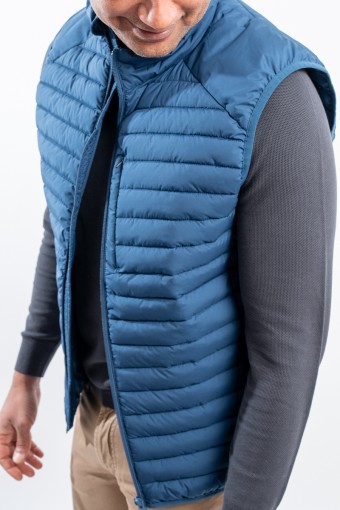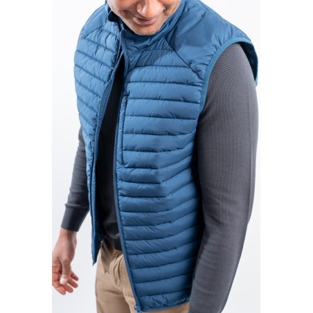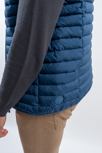 Gilet slim fit imbottito in morbido e leggero plumtech, ideale per un uso quotidiano. Traspirante e idrorepellente. Full zip a doppio cursore con tira zip loggate. Trapuntatura a boudin classico. Giro manica e fondo elasticizzati. Tasche laterali e sul petto chiuse con zip a filo. Richiudibile nel pratico sacchetto in dotazione.