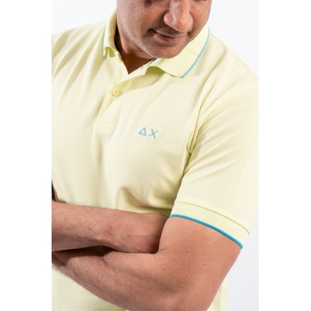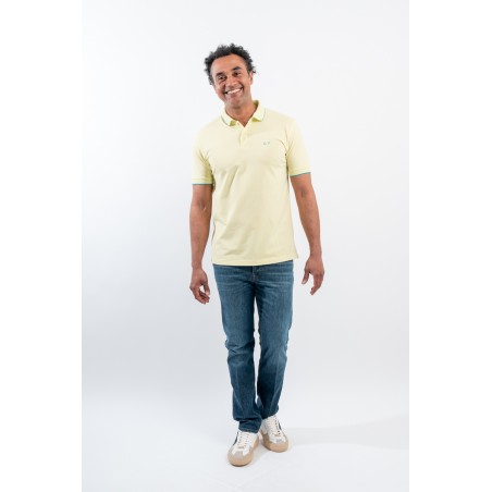 Polo 2 bottoni a manica corta realizzata in piquèt stretch. Spacchi laterali sul fondo. Colletto e bordo maniche a costine. Caratterizzata da colori vivaci e classici con profili a contrasto. Logo ricamato sul petto. Slim fit.