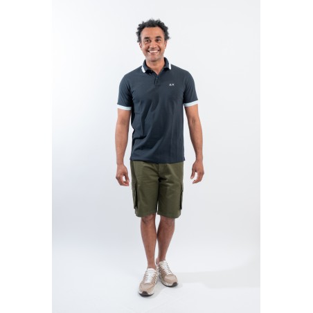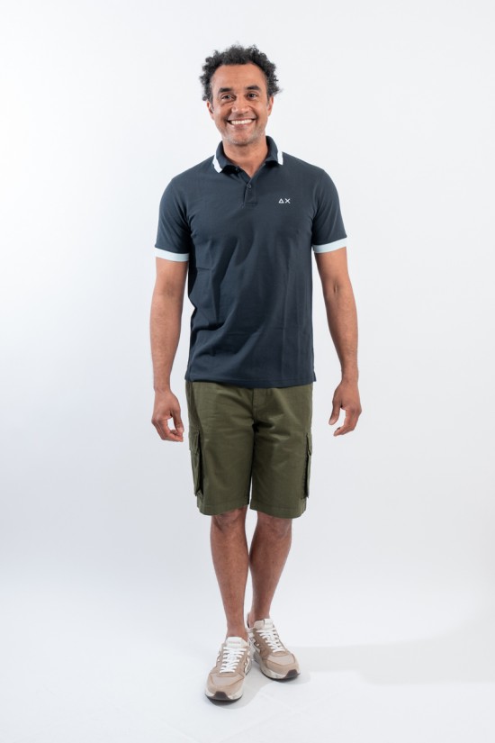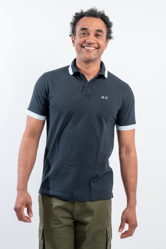 Polo 2 bottoni a manica corta realizzata in piqué stretch. Spacchi laterali sul fondo. Colletto e bordo maniche a micro costine. Caratterizzata da classici vivaci con profili a contrasto. Logo ricamato sul petto. Slim fit.
