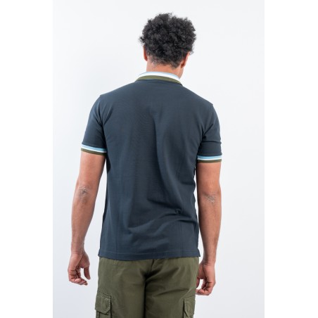 Polo 2 bottoni a manica corta realizzata in piqué stretch. Spacchi laterali sul fondo. Colletto e bordo maniche a micro costine. Caratterizzata da colori vivaci con profili multicolori a contrasto. Logo ricamato sul petto. Slim fit.