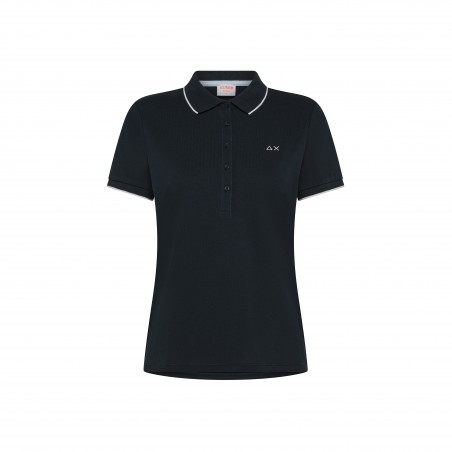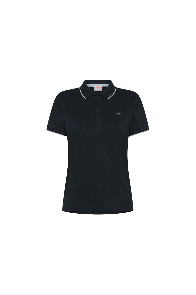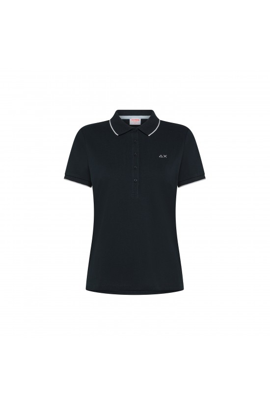 Polo a manica corta realizzata in piquèt stretch. Spacchi laterali sul fondo. Colletto e bordo maniche a costine. Caratterizzata da colori classici con profili a contrasto. Logo ricamato sul petto. Slim fit.