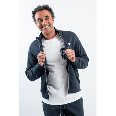 Pratica felpa SUN68 full zip realizzata in misto cotone. Polsini e fondo lavorati a costine elasticizzati, per una perfetta aderenza. Tasche con pattina.  Impreziosita dal logo istituzionale ricamato in rilievo e a contrasto.