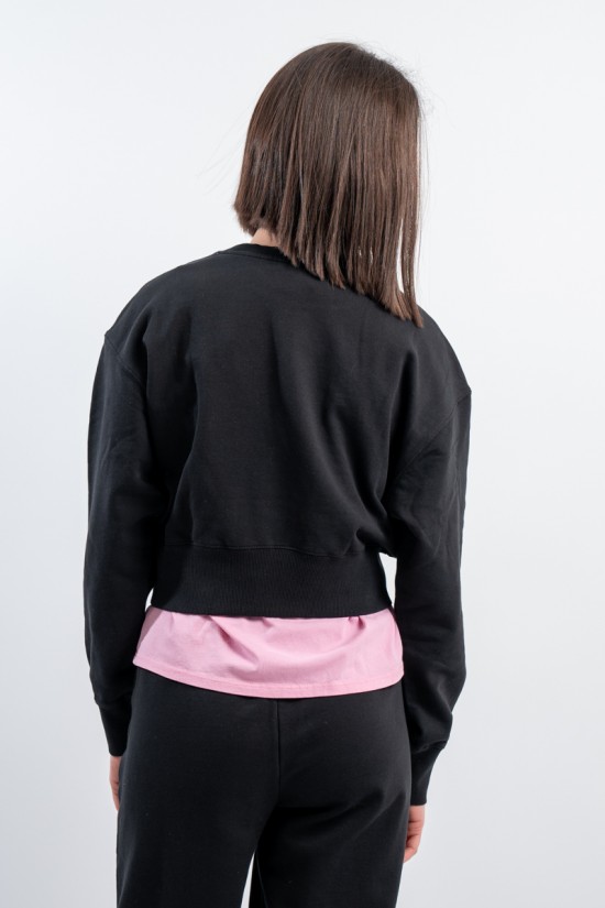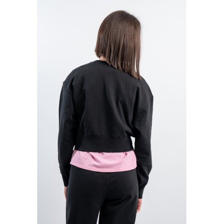 Felpa girocollo con logo istituzionale ricamato in contrasto colore frontale. Realizzata in 100% cotone. Cropped fit. Girocollo con dettaglio a contrasto, polsini e fondo a costine elasticizzato. Vestibilità morbida.