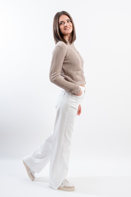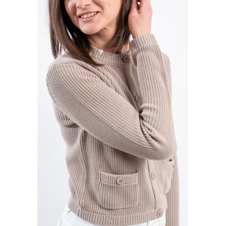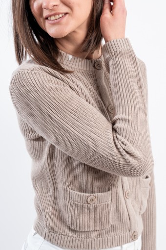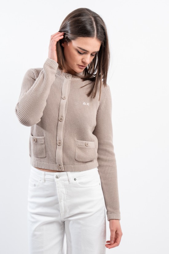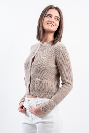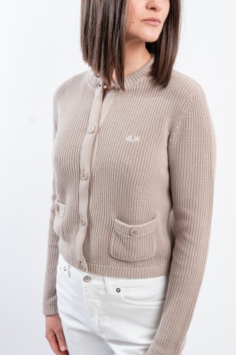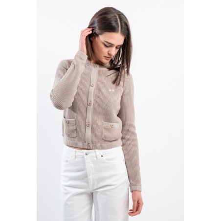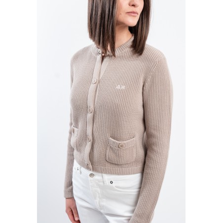 Cardigan cropped in morbido cotone di Sun 68. Girocollo con bottoni tono su tono e logo ricamato sul petto. Caratterizzato dai taschini con patta e bottone sui lati. Vestibilità regular.