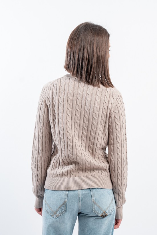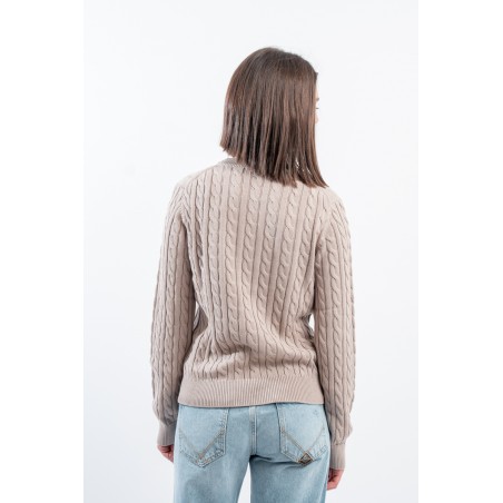 Maglia girocollo realizzata in 100% cotone. Caratterizzata dalla lavorazione a treccia. Girocollo, polsini e fondo a costine. Vestibilità regolare.