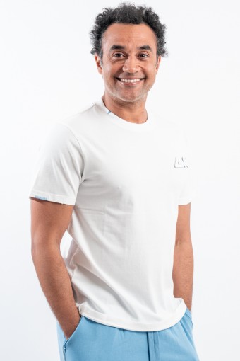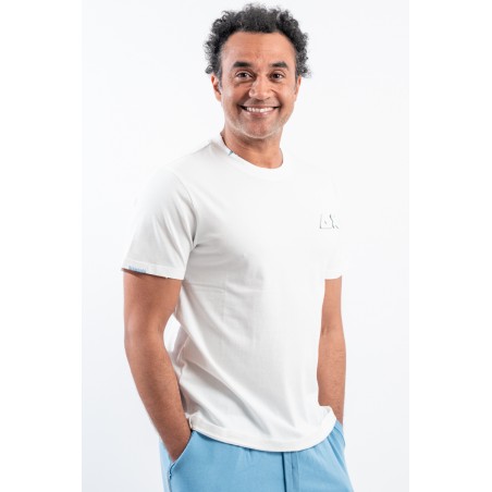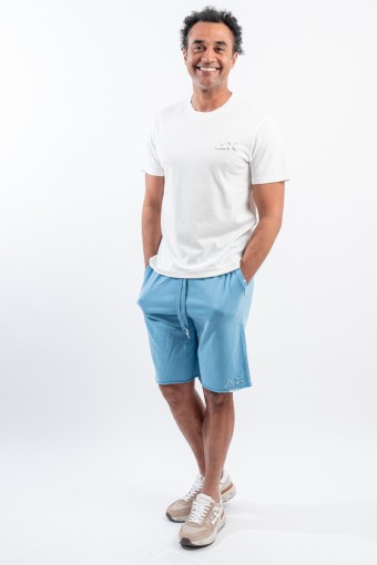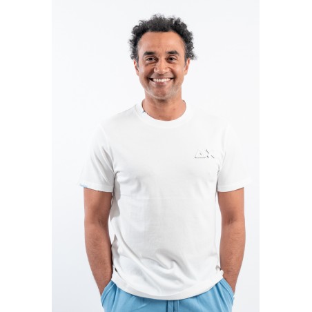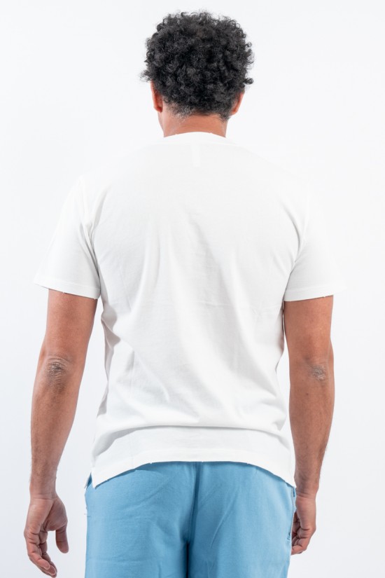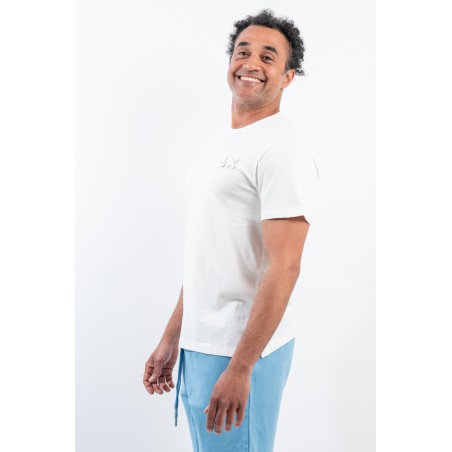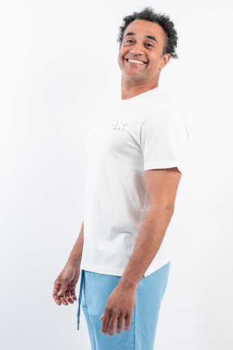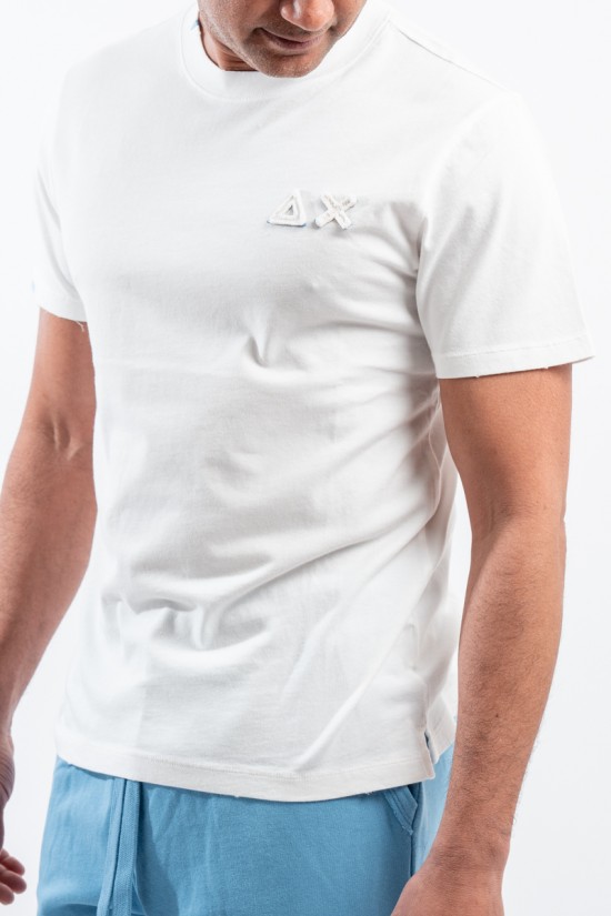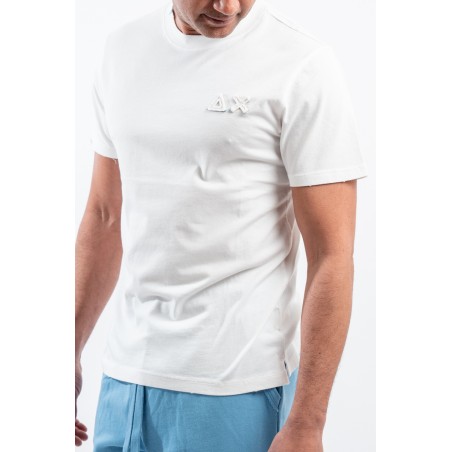T-shirt SUN68 girocollo realizzata in piquet cotone stretch. Impreziosita da patch con logo istituzionale tinta su tinta ricamato sul petto. Girocollo e bordo delle maniche lavorate a costine. Trattamento vintage Washed.