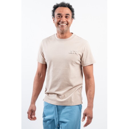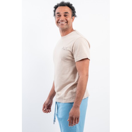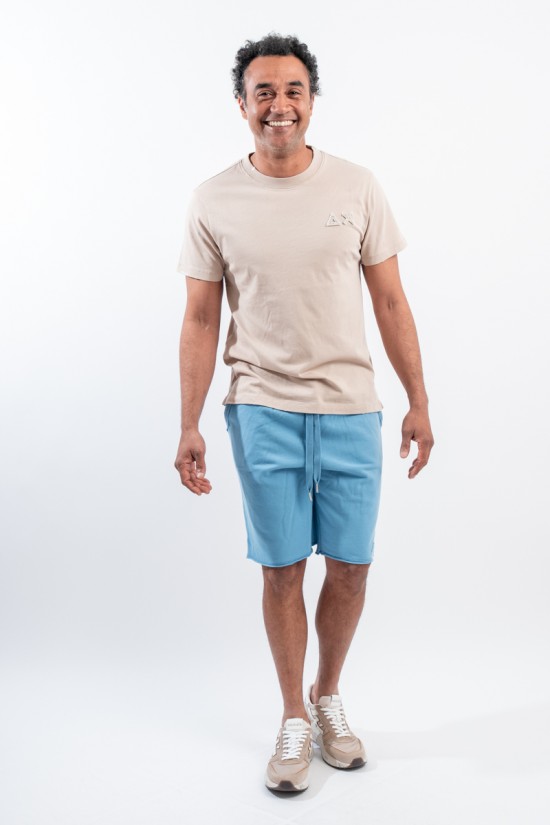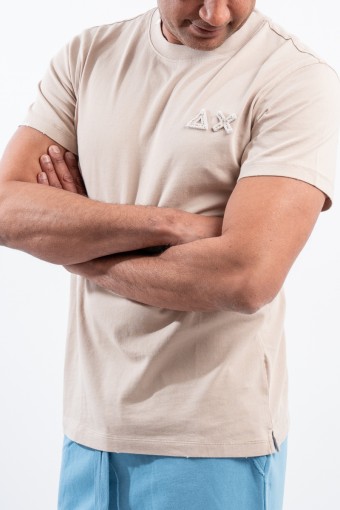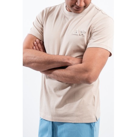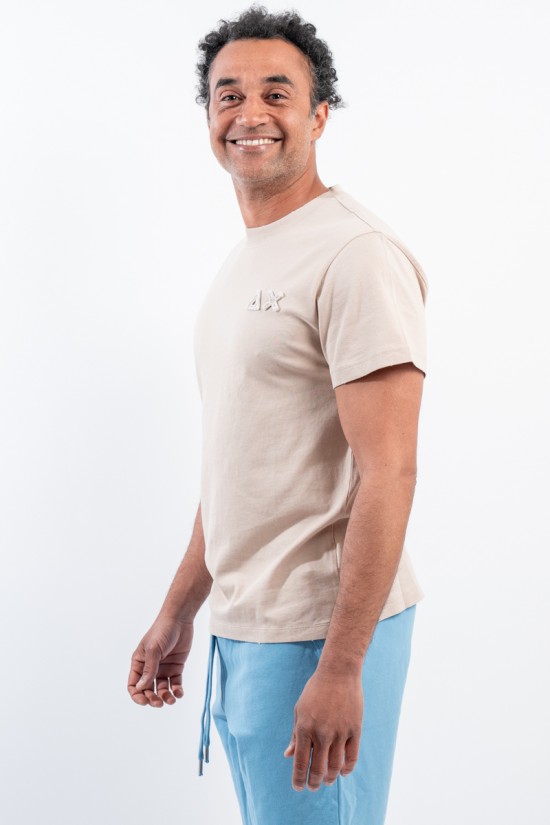 T-shirt SUN68 girocollo realizzata in piquet cotone stretch. Impreziosita da patch con logo istituzionale tinta su tinta ricamato sul petto. Girocollo e bordo delle maniche lavorate a costine. Trattamento vintage Washed.