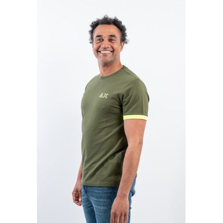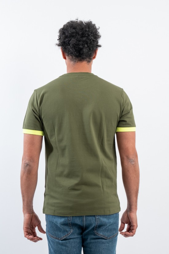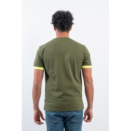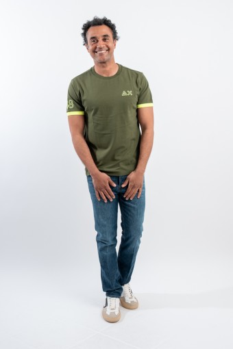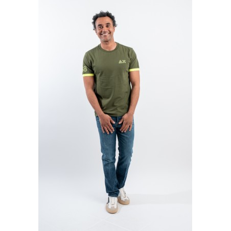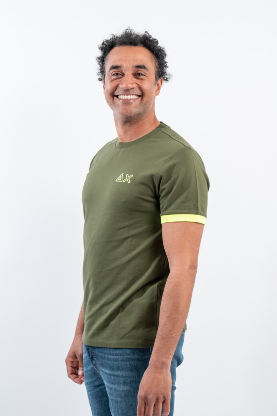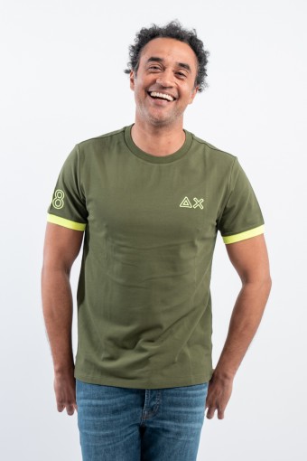 T-shirt SUN68 girocollo realizzata in piquet cotone stretch. Impreziosita dai dettagli fluo e logo a contrasto di colore. Girocollo e bordo delle maniche lavorate a costine. Logo iconico ricamato in rilievo sul petto.