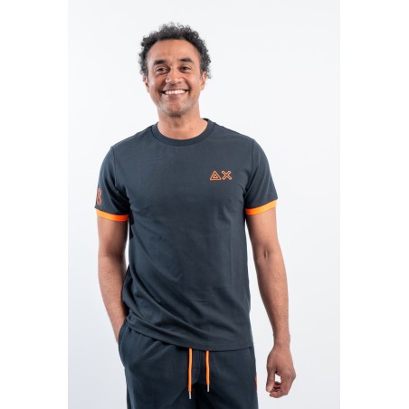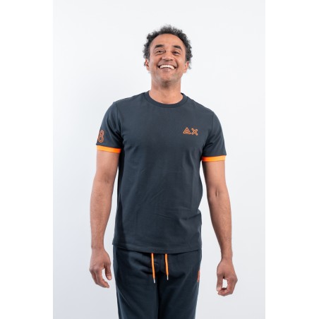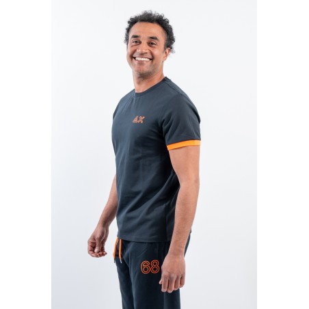 T-shirt SUN68 girocollo realizzata in piquet cotone stretch. Impreziosita dai dettagli fluo e logo a contrasto di colore. Girocollo e bordo delle maniche lavorate a costine. Logo iconico ricamato in rilievo sul petto.