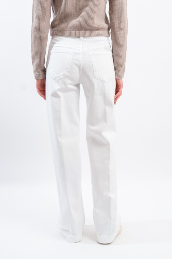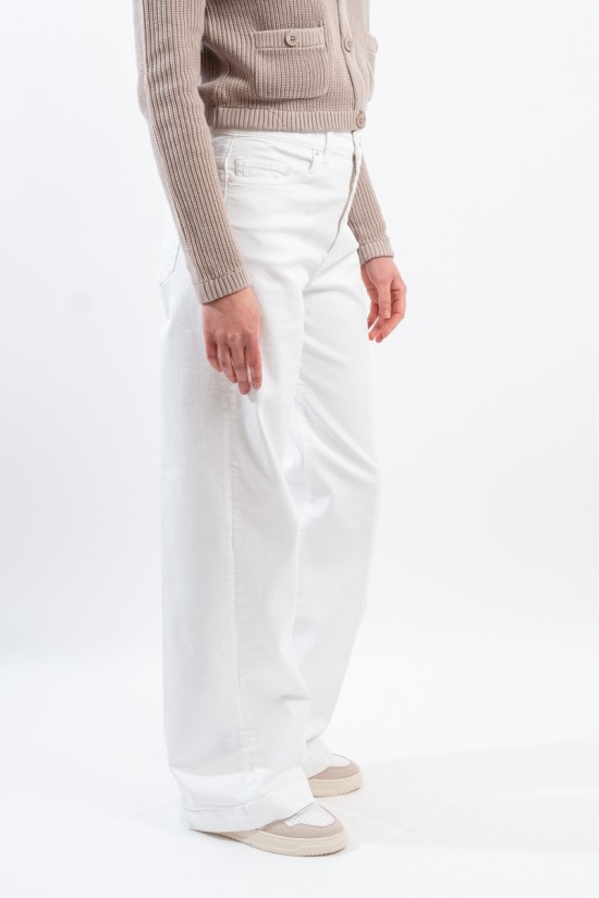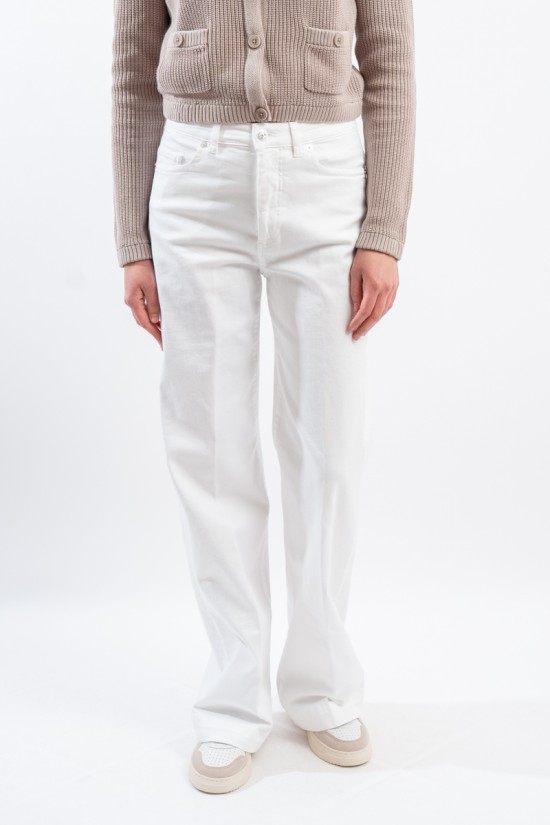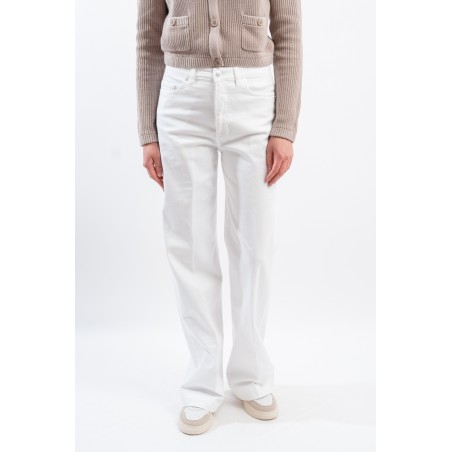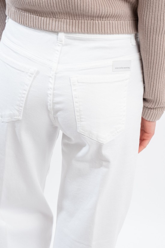 Nine in the Morning è il denim dalla vestibilità perfetta. Questa modello presenta vita regolare con gamba a palazzo. Bull denim bianco realizzato in una tela leggera che lo rende perfetto per tutte le stagioni. La linea essenziale e il taglio ricercato esaltano la silhouette di ogni donna!