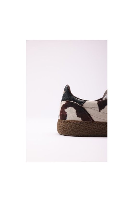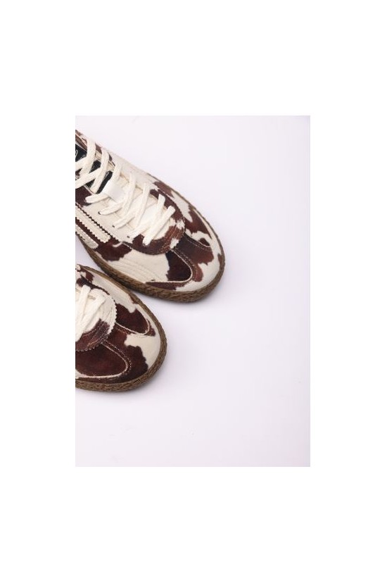 La sneaker Puraai è l'alleato perfetto per il tuo stile eco-consapevole! Realizzate in tessuti riciclati e vegani, queste scarpe uniscono sostenibilità e design moderno. La tomaia è realizzata interamente con stampa mucca effetto cavallino, che aggiunge un tocco di originalità, mentre la soletta interna in sughero naturale antibatterico garantisce comfort e freschezza. Caratterizzata dalla suola in gomma riciclata che offre aderenza e durata, rendendo ogni camminata un'esperienza unica. Con il logo cucito lateralmente, le sneakers Puraai non sono solo un accessorio, ma un vero e proprio manifesto di stile e responsabilità. Made in Italy! Scegli il futuro, scegli Puraai!