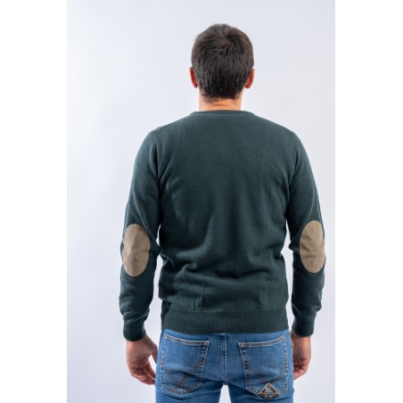 Maglia girocollo con lavorazione a maglia rasata impreziosita dalla toppa in alcantara. Vestibilità regolare. Made in Italy.